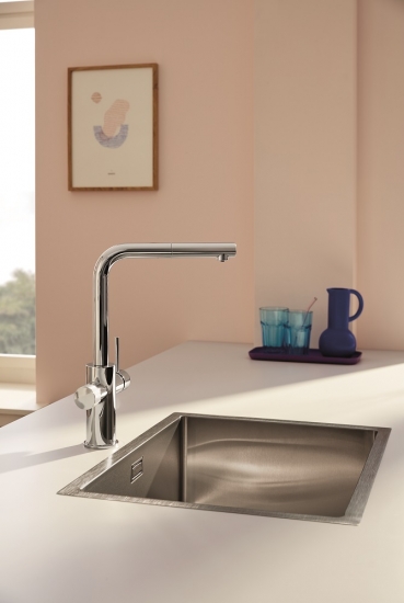 Встановіть універсальний змішувач GROHE BLUE PURE MINTA з висувною лійкою, для насолоди фільтрованою питною водою вдома без потреби в бутильованій води або громіздких фільтрувальних системах. Кухонний змішувач для фільтрованої води GROHE Blue Pure Minta забезпечує чисту, смачну питну воду прямо з-під крану, без зайвого клопоту та носіння пластикових бутилок. Його можна комбінувати з різними фільтрами GROHE Blue S-, M- та L-розмірів, в залежності від об'єма використання, а також з фільтрами Магній+Цинк, GROHE Blue Ultrasafe, з активованим вугіллям, зі зворотним осмосом або мінералізаційним фільтром зі зворотним осмосом, відповідно до вашого смаку та стилю життя.