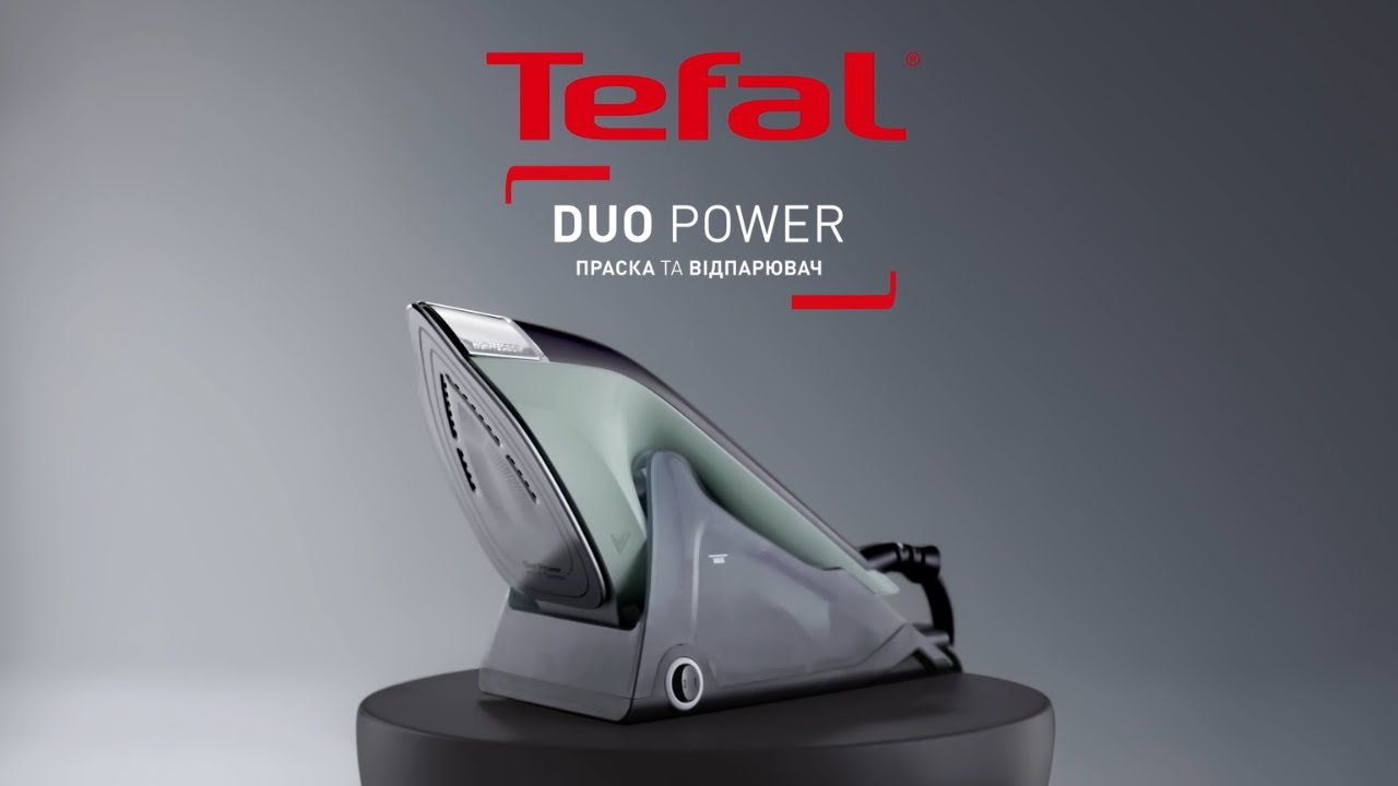 Опис Відпарювач Tefal компактний Duo Power 2в1, 1700Вт, 400мл, паровий удар -180гр, постійна пара - 25гр, керам. підошва, світло-зелений