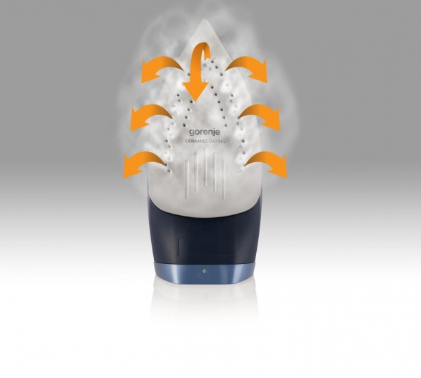 Керамічне покриття підошви рівномірно розподіляє тепло, що забезпечує гладке та ефективне прасування. Воно запобігає прилипання тканин і усуває статичну електрику, забезпечуючи легке ковзання та довговічність.