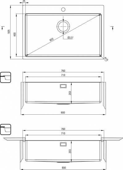 | Довжина вирізу | 740 мм (врізний), 710 мм (підвісний) |