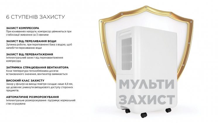- Ультрафіолетова лампа - ефективний захист від бактерій і мікробів, додаткова дезінфекція повітря.