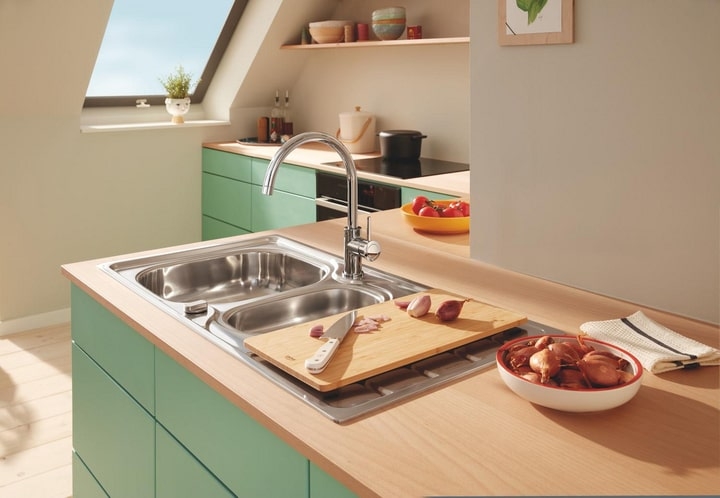 Кухонний змішувач QuickFix Start Classic із хромованим покриттям ідеально поєднує сучасний дизайн та функціональність. Високий поворотний вилив на 360° з аератором забезпечує максимальну зручність. Завдяки технології GROHE Long-Life 28 мм керамічний картридж забезпечує довговічність і плавну роботу.