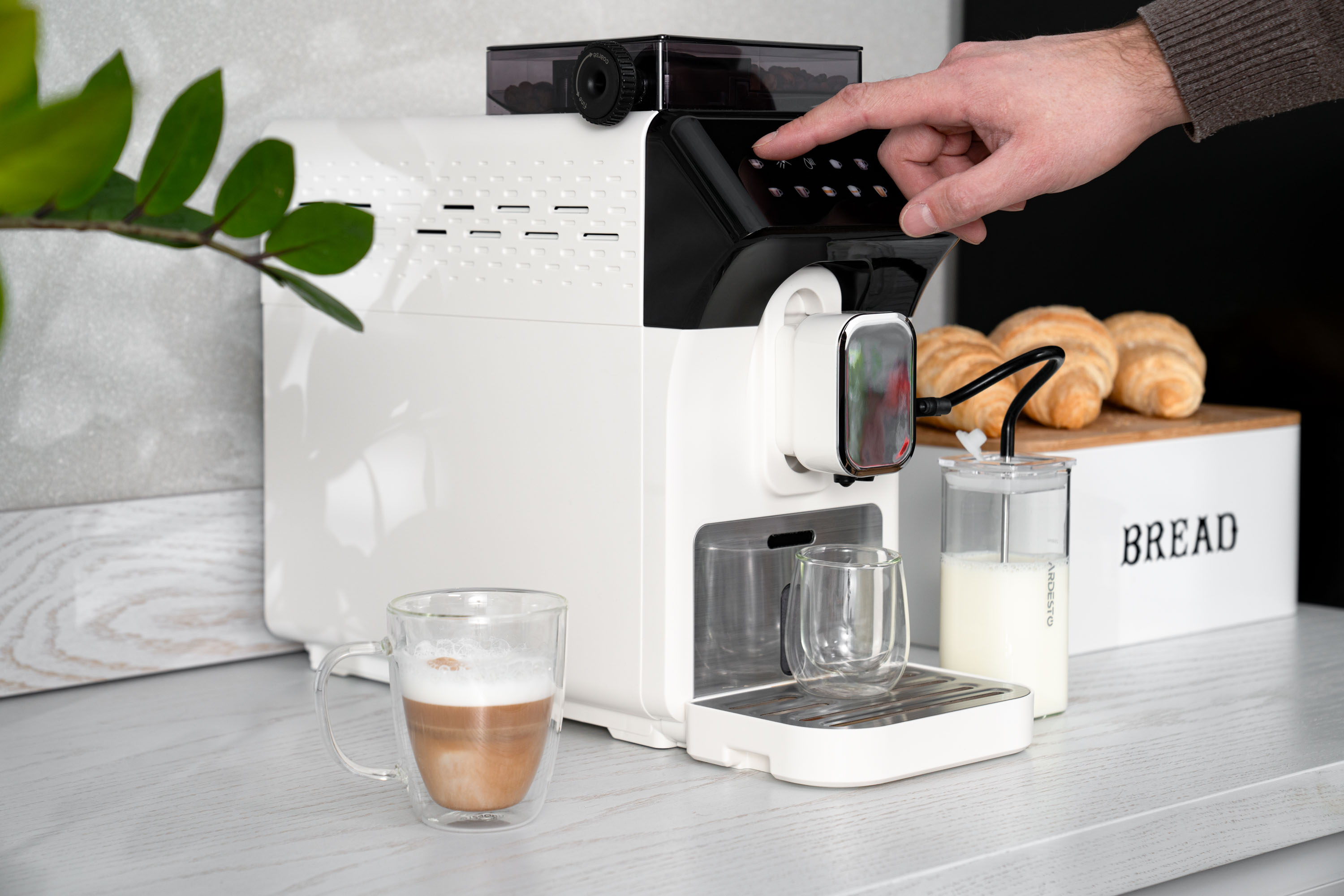 Кавомашина Ardesto FCM-FA900W, 2л, зерно, автоматичний капучинатор, дисплей, 9 авторецептів, біло-чорна