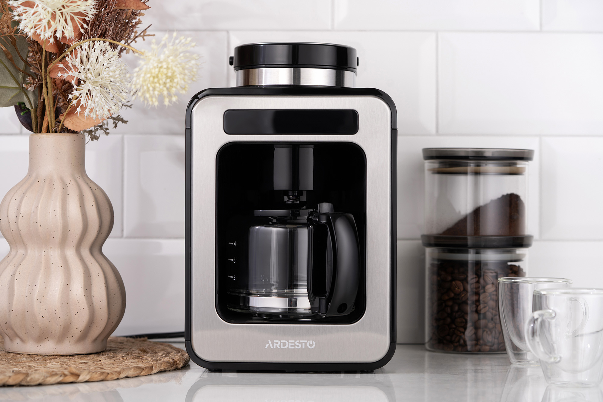 Опис Кавоварка ARDESTO Steel Collection крапельна 0.5л, зерно + мелена, дисплей, сріблясто-чорний
