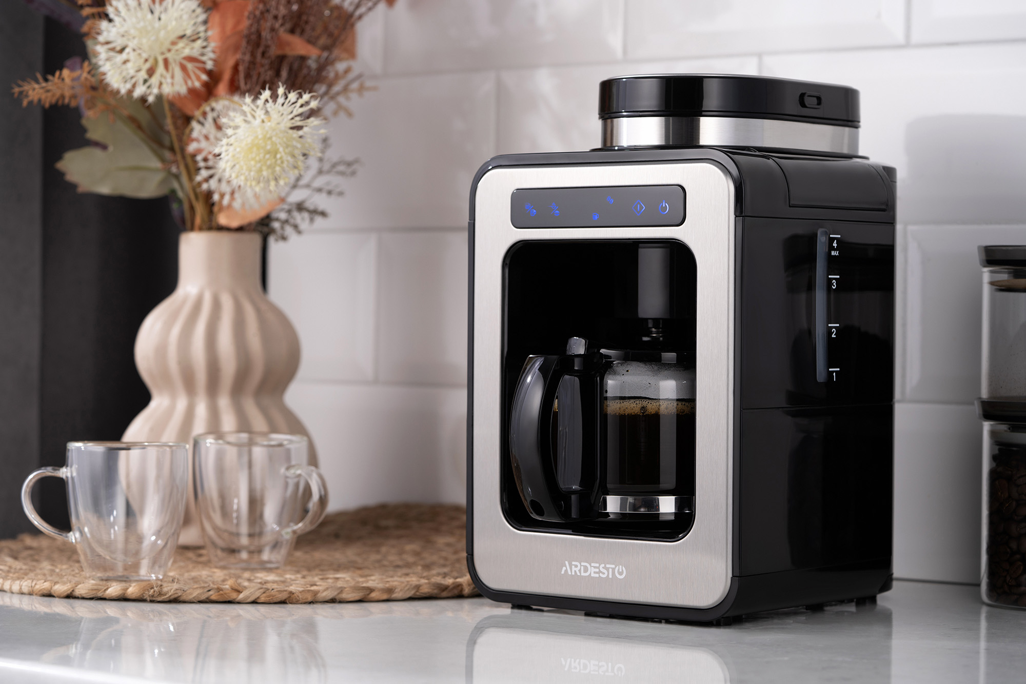 ARDESTO FCM-DG064 устатковано сенсорною панеллю керування, яка робить користування кавоваркою інтуїтивно зрозумілим і зручним. Резервуар для води об’ємом 0,5 л дає змогу приготувати до 5 чашок кави. Зручний індикатор рівня води забезпечує контроль кількості рідини, а протикрапельна система запобігає проливанню, навіть якщо зняти кавник під час роботи пристрою.