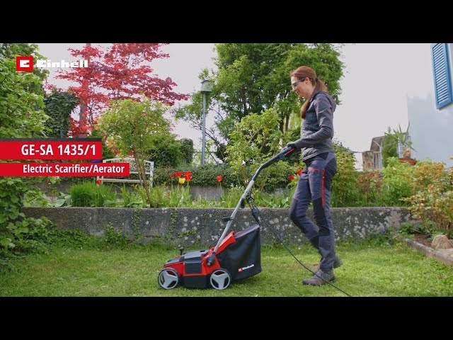 Будь-який газон після 2 - 3 років починає деградувати, з'являються лисиці, бур'яни, кущики з трави та залишки відмерлої сухої трави. Щоб повернути такий газон до життя, нам не обійтися без скарифікаторів (вертикутерів, аераторів). Електричний скарифікатор аератор Einhell GE-SA 1435/1 своїми 24 кігтями вичісує стару траву і бур'яни на рівнях без занурення в ґрунт, а своїми 16 ножами при зануренні в ґрунт підрізає живе коріння трави, що сприяє більш рівномірному і густому розростанню газону, а також руйнування купок, що з'явилися, тим самим розпушує грунт для оптимального проникнення повітря і вологи і сприяє засвоєнню грунтом поживних речовин, що дає Вашому газону можливість «дихати». Для цієї мети потужний двигун потужністю 1400 Вт забезпечує сильний крутний момент, для безперервної обробки з послідовно хорошими результатами. Завдяки регулюванню робочої глибини в 3-рівні, скарифікатор аератор може бути добре пристосований до вимог ґрунту та рослинності. Додатковий вал, встановлений на шарикопідшипниках для аерації, забезпечує професійну аерацію грунту за допомогою 24 пазурів. Додаткове положення для паркування захищає ножі. Для полегшення роботи у складних умовах та зменшення навантаження на газон аератор оснащений великими колесами. Пристрій має міцний корпус із високоякісного ударостійкого пластику. Завдяки складаній довгій ручці з регульованою висотою, яка оснащена важелем швидкої фіксації та положенням паркування, скарифікатор аератор Einhell GE-SA 1435/1 займає менше місця при зберіганні, також є зручна ручка для перенесення. Рекомендується для газону під час проходу за один раз площею до 500 м.кв.
