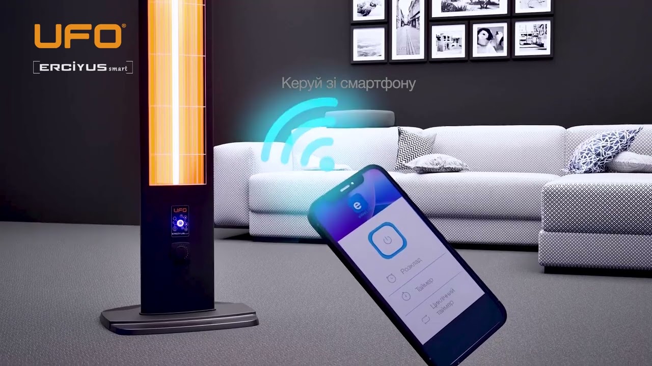 Інфрачервоний обігрівач UFO Erciyus Smart 2300 з системою розумного керування. Завдяки сучасній системі, керуй дистанційно обігрівачем, контролюй температуру в кімнаті та витрати електроенергії. Інтегрується з системою Розумний Дім. Дана модель обігрівача має сучасний, мінімалістичний дизайн, його легко переміщати по приміщенню, завдяки мобільності. Використовується для приміщень усіх типів та площ. Рекомендовано для обігріву житлових та нежитлових приміщень, а саме: кімнат в квартирі та будинку, в приміщеннях кафе, лікарень, в закладах освіти, в спортивних та виставкових центрах.