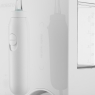 Стаціонарний іригатор з десятьма режимами тиску, великою кількістю насадок, ємністю для води на 600 мл, а також таймером на три хвилини. Очищає до 99,9% залишків їжі, навіть в важкодоступних місцях, куди не може потрапити класична щітка.