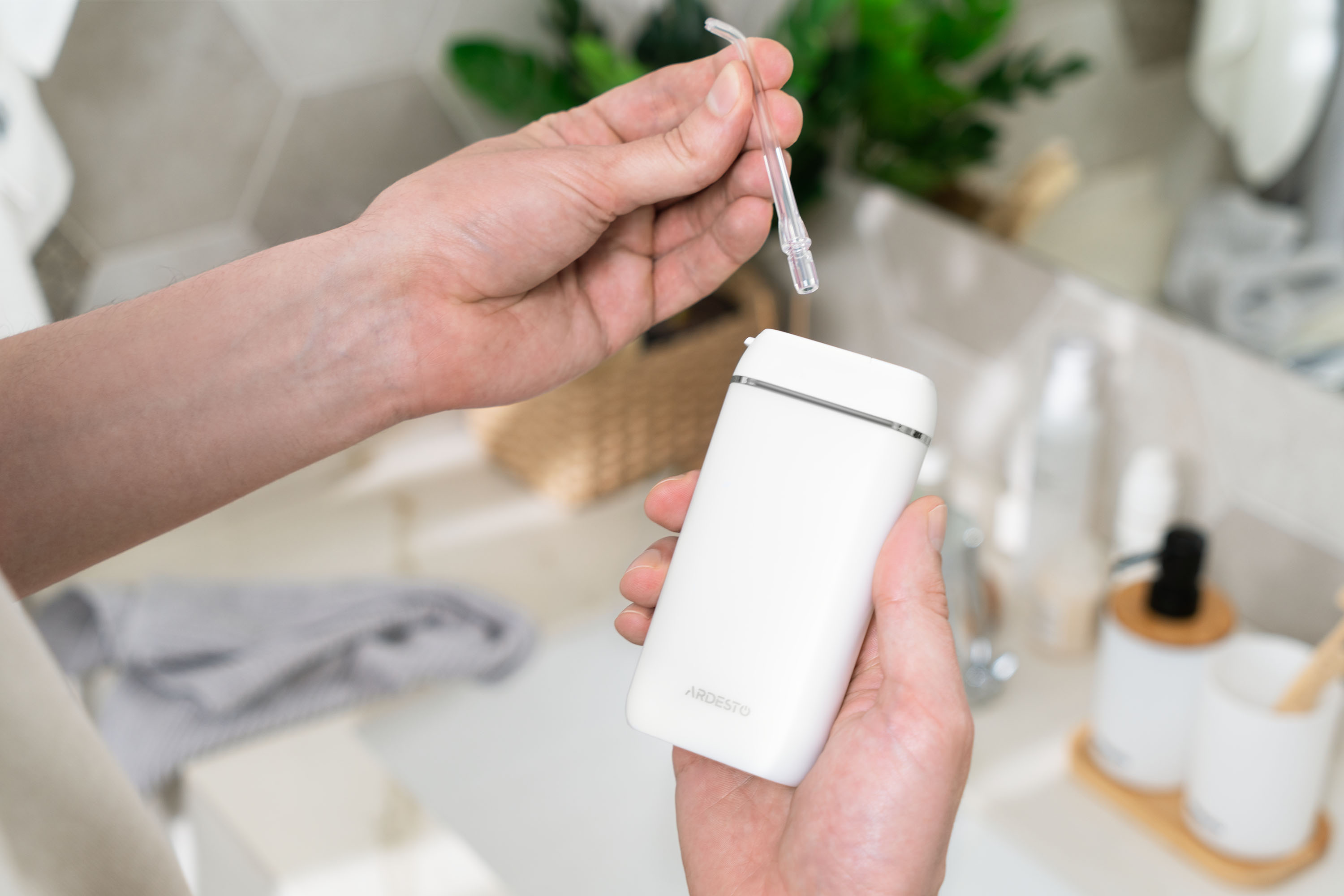 Ирригатор Ardesto портативный, чаша 140 мл, Li-ion акум. в компл., белый