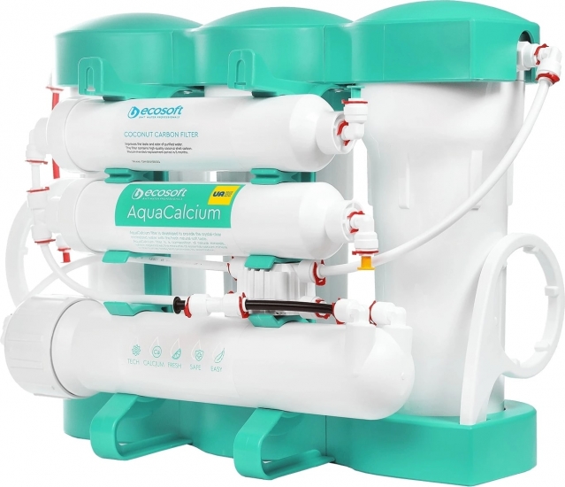 Фільтр зворотного осмосу Ecosoft P'URE AquaCalcium з помпою на станині забезпечить питною водою ідеальної якості сім'ю до п'яти осіб. Підходить для очищення водопровідної води, а також води зі свердловини після грубої фільтрації, фільтр встановлюється, як у квартирі, так і в котеджі.