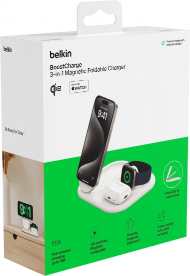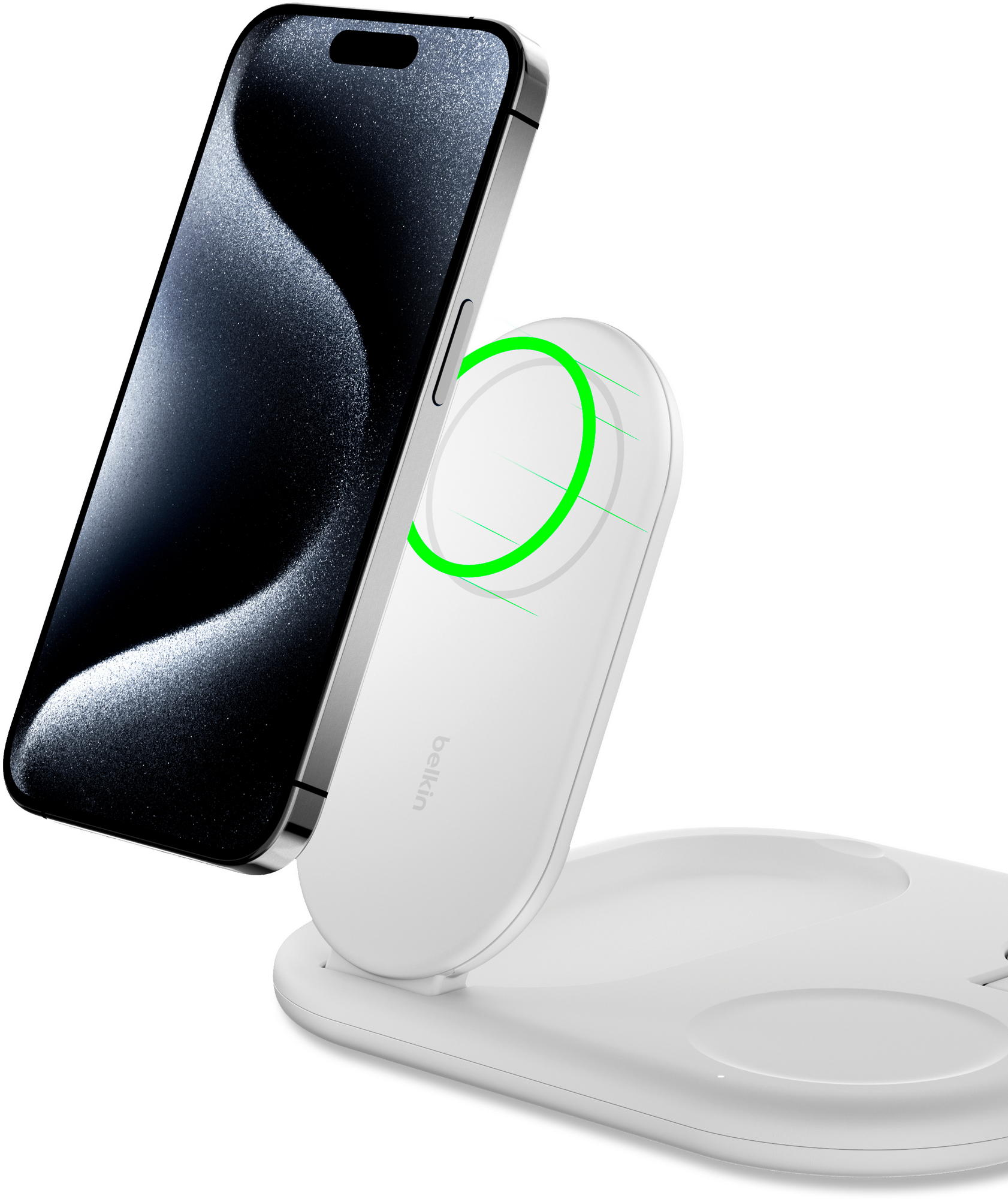 Опис Зарядний пристрій бездротовий Belkin 3в1 Magnetic Foldable iPhone/Watch/AirPods, Qi2 15Вт, білий
