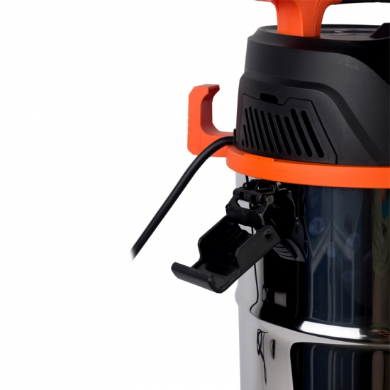 Корпус з нержавіючої сталі гарантує довговічність та стійкість до корозії, він стійкий до впливу хімічних розчинів та не вимагає особливого догляду. Сміття з гострими краями (метал, каміння тощо) можна всмоктувати безпосередньо в бак, не побоюючись пошкодити його.