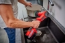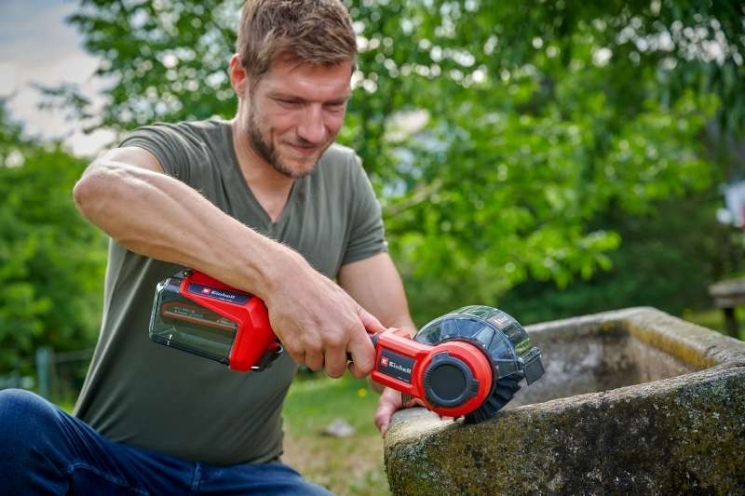 Акумуляторний очищувач поверхонь лінійки Power X-Change system Einhell PICOBELLA 18/90 серії Expert універсальний помічник для прибирання в приміщенні та на вулиці, наприклад, у саду, гаражі чи вдома. Очищувач поверхонь Einhell PICOBELLA 18/90 оснащений 2-ступінчастим регулюванням швидкості, щоб адаптувати потужність відповідно до матеріалу та сфери застосування. Для захисту при вологому прибиранні, пристрій оснащений кришкою акумулятора та ущільнювальним кільцем відповідно до класу захисту від води IPX4. Таким чином, акумулятор Power X-Change оптимально захищений від потрапляння бризок. Щітка MEDIUM 90/20 може бути оснащена знімною кришкою для захисту від бризок з гумовим ущільнювачем, що захистить Вас від розбризкування води та бруду під час чищення обертовою щіткою. М'які поверхні на ручці забезпечують неслизьку та комфортну роботу. До комплекту поставки входять дві насадки: 1 щітка MEDIUM 90/20 для очищення міцних поверхонь, таких як плитка, камінь або бетон, і 1 щітка SOFT 120/50 для м'якого, але ефективного очищення різних поверхонь, таких як підвіконня, садові меблі або автомобільні диски. Крім того, до комплекту входять три різні чистячі губки: 1 біла губка з меламіну для видалення бруду без додаткового миючого засобу для гладких поверхонь, таких як скло, двері/стіни та шкіра, 1 синя губка з мікрофібри для чутливих поверхонь, таких як пластик, скло або метал, і 1 зелена губка з кухонного волокна для видалення грубого бруду, іржі або вапна з міцних поверхонь, таких як загартоване скло і чавун. Губки кріпляться до щітки за допомогою тримача для губок, що входить до комплекту. Щітки та насадки можна замінювати без інструментів за допомогою швидкого кріплення або застібки-липучки. Настінне кріплення, що входить до комплекту, дозволяє легко зберігати акумуляторний очищувач поверхонь Einhell PICOBELLA 18/90. Очищувач поверхонь поставляється без акумулятора і зарядного пристрою, але він може бути приведений в дію за допомогою Power X-Change акумулятора.
