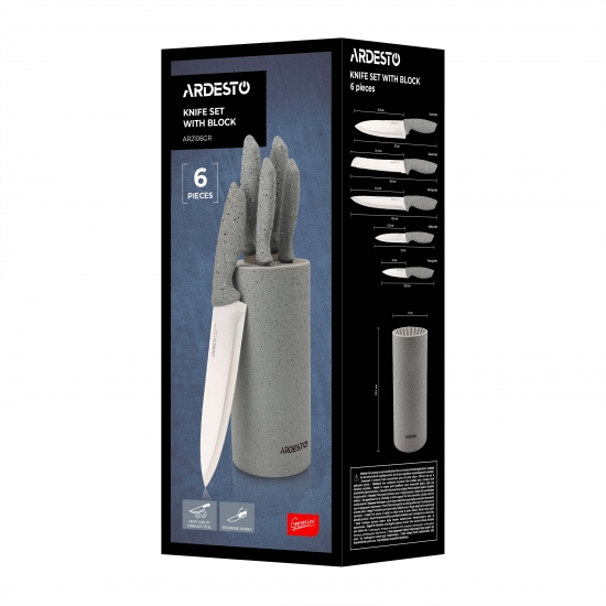 Набір ножів з блоком ARDESTO Gemini, 6 предметів, нержавіюча сталь, пластик, сірий