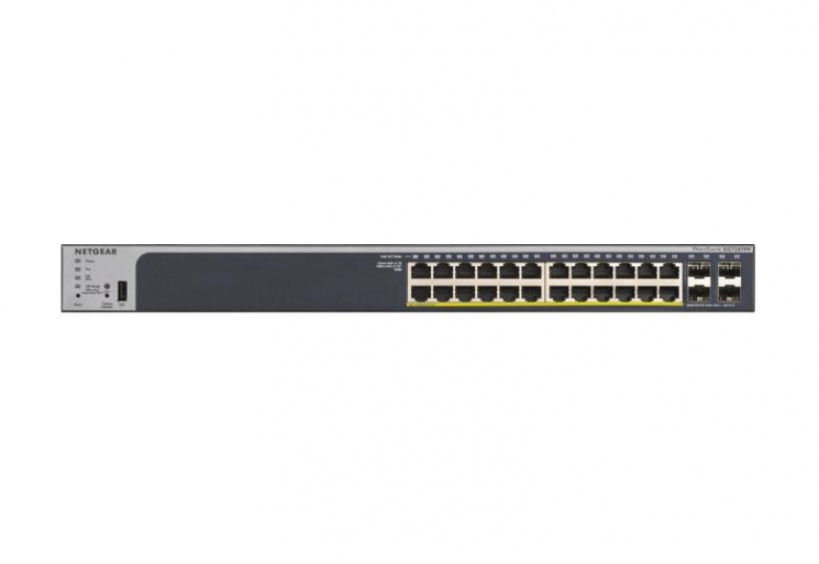 | Кількість портів | 29 (24 PoE+ (802.3at) 1GBASE-T RJ-45 порти; 4 x 1G SFP (оптичних) порти; порт USB (для завантаження/резервного копіювання файлів конфігурації та оновлення ПЗ) |
