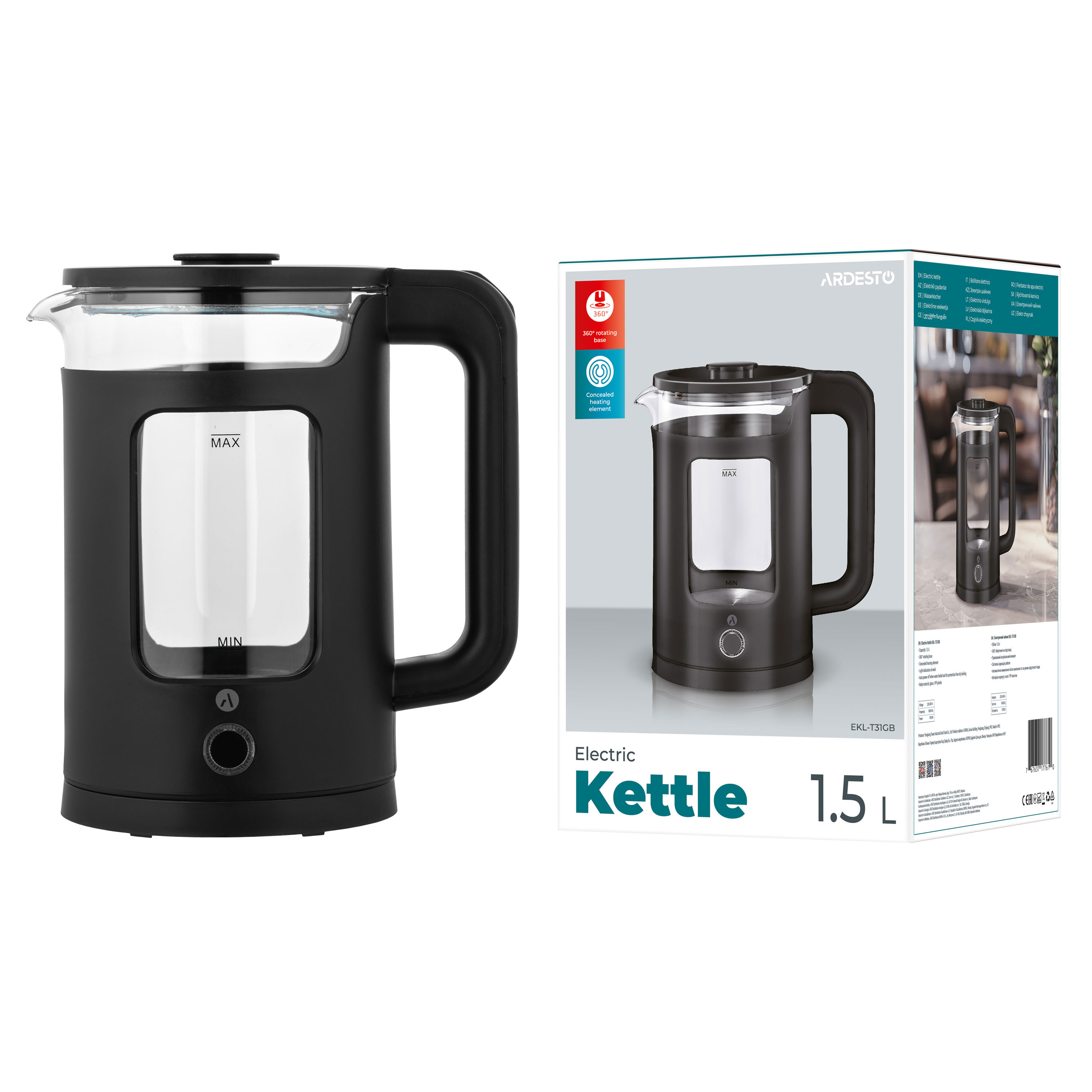 Опис Електрочайник Ardesto 1.5л, скло+пластик, чорний