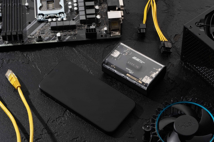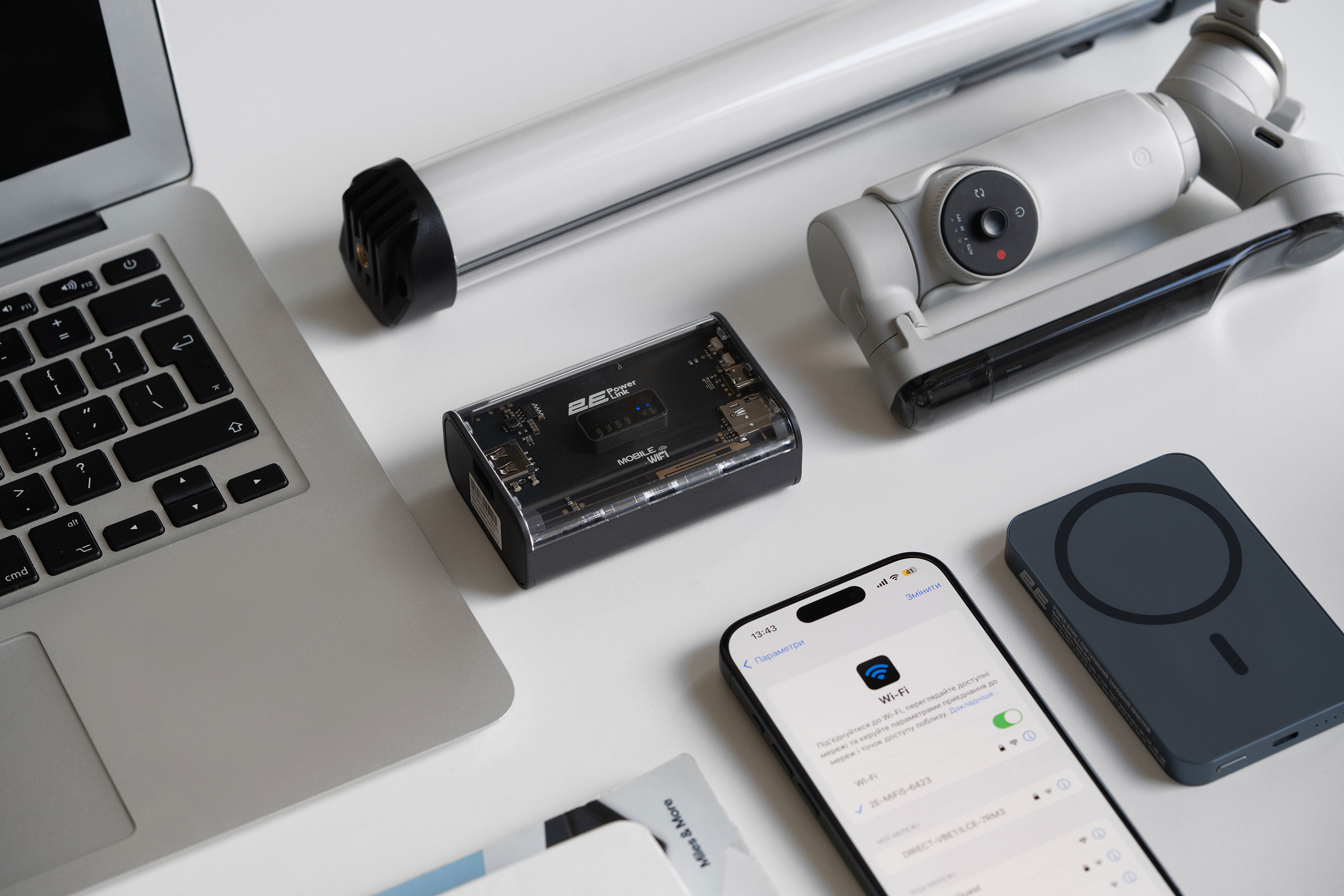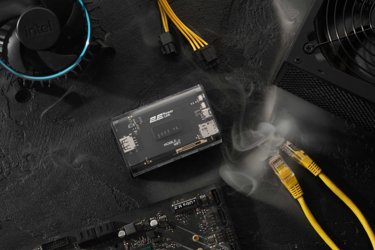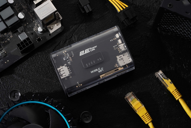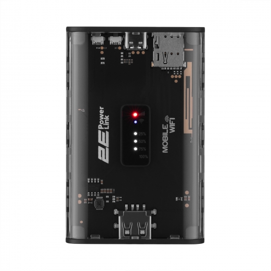 Дизайн цього маршрутизатора не залишить байдужим жодного техноентузіаста. Прозора передня панель відкриває вид на друковану плату (PCBA) з усіма рознімами, доріжками та інтегрованими компонентами. Логотип PowerLink у центрі плати додає естетики, яка здається вирваною прямо з кіберпанкової реальності. Попри компактність, пристрій має все необхідне для роботи: слот для nano-SIM-карти, світлодіодні індикатори мобільної і Wi-Fi-мережі, індикатор рівня заряду акумулятора, інтерфейси – USB-C для заряджання роутера та USB-A, який дає змогу використовувати його як Powerbank.