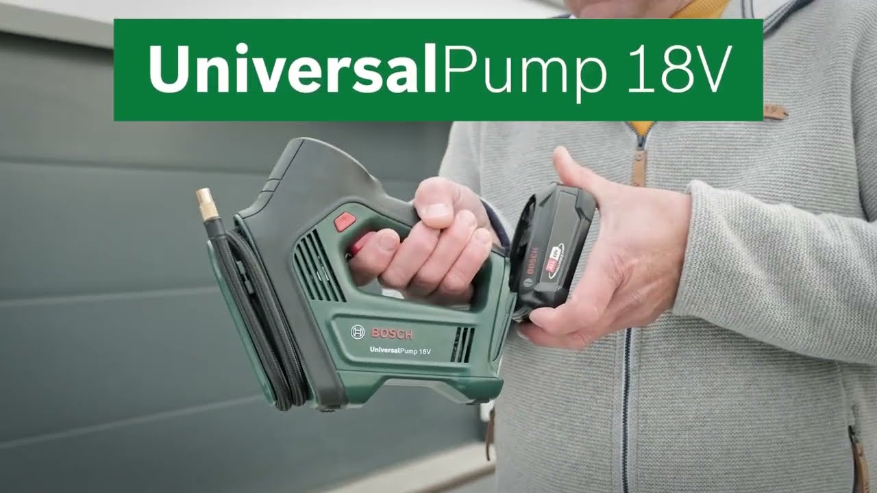 • Bosch UniversalPump 18V - це все, що вам потрібно для швидкого накачування будь-яких предметів - до 30 літрів повітря на хвилину, інтуїтивно зрозуміле управління та комфорт.