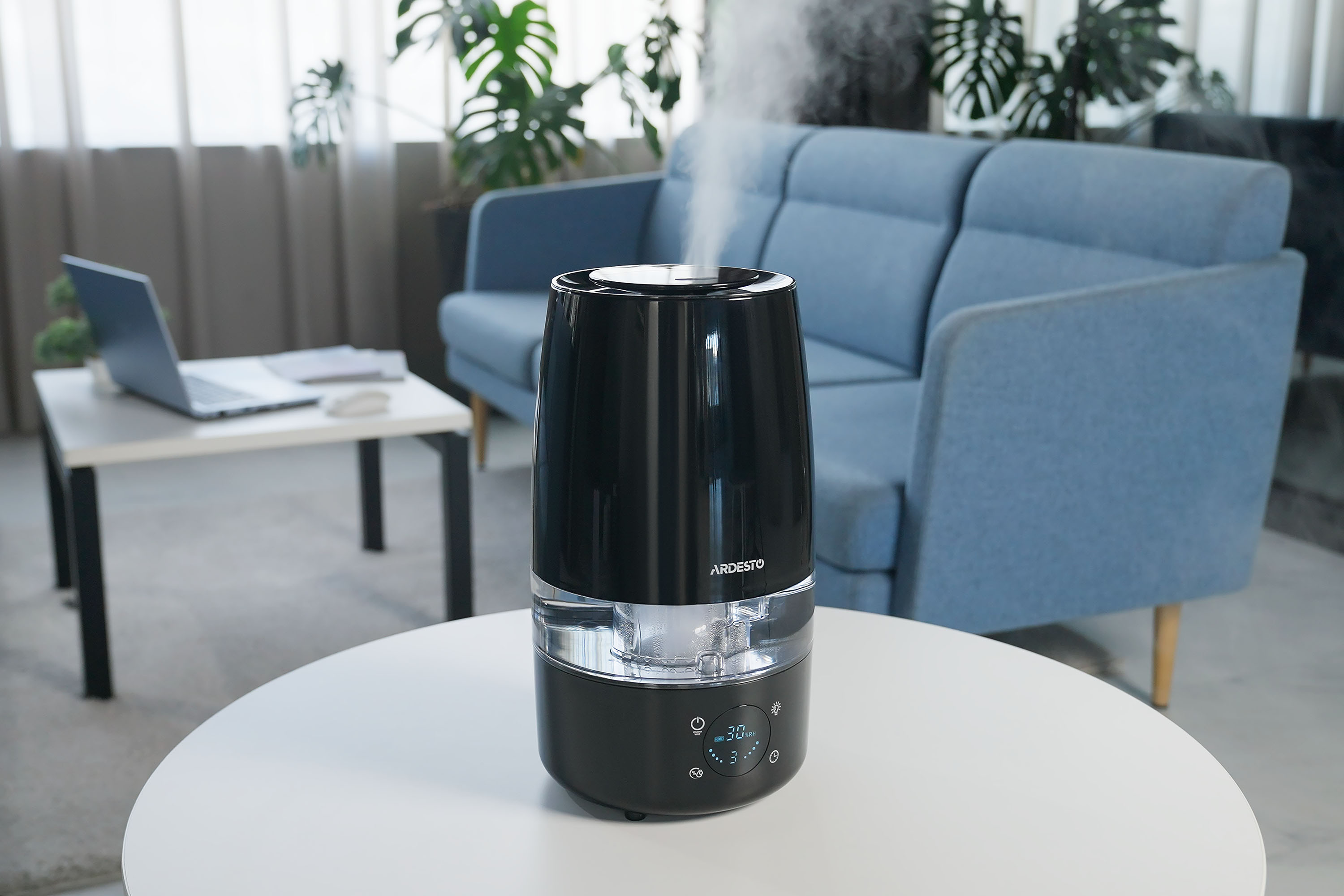 ARDESTO USH-H-4B розроблено для стабільної та ефективної роботи в просторі до 30 м², підтримуючи оптимальну вологість. Вбудований гігростат дає змогу регулювати рівень вологості від 45 % до 90 %, автоматично підтримуючи його без втручання з боку користувача. Продуктивність моделі становить 280 мл/год. Отвір для наповнення резервуара об’ємом 4 л розташовано згори, що додає зручності під час використання. Завдяки сенсорному керуванню та пульту ДК користувач може змінювати режими, регулювати інтенсивність подавання пари або вмикати таймер на відстані, що особливо зручно у великих приміщеннях. Безпека використання також на висоті: у разі нестачі води зволожувач автоматично вимикається, що запобігає перегріванню і продовжує термін слугування.