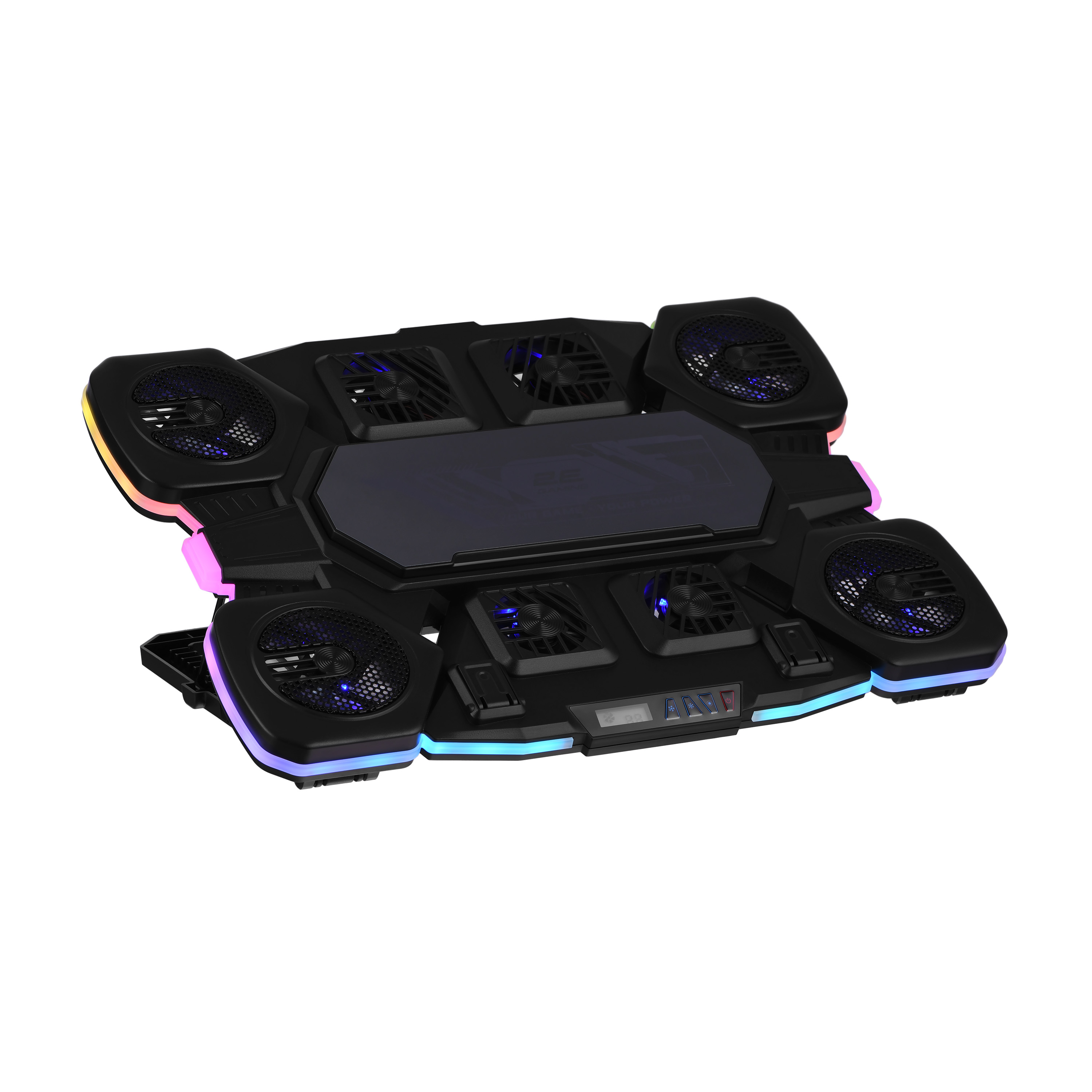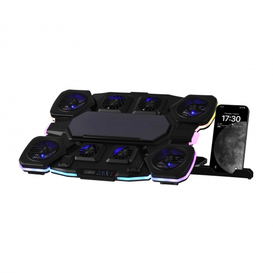 Вбудований LCD-дисплей – це персональне вікно до світу зручного керування. Забудьте про складні налаштування – легко регулюйте швидкість обертання вентиляторів, перемикайте режими підсвічування і насолоджуйтесь простотою керування. Підставка забезпечує максимальний комфорт і дарує можливість сконцентруватися на дійсно важливих справах.