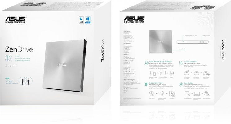 Головна - Споживчі товари і електроніка - Електроніка, комп'ютери та офіс - Комп'ютерні компоненти - Оптичні приводи - ASUS - Привід оптичний портативний SDRW-08U9M-U DVD+-R/RW burner M-DISC USB2.0 Slim срібний Retail Box