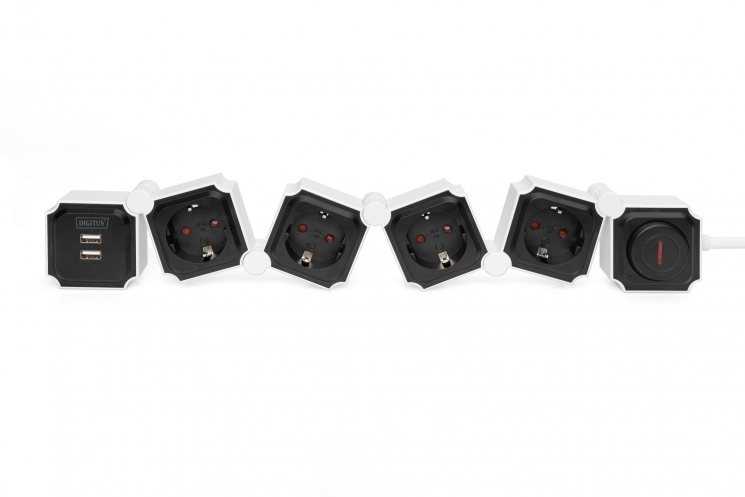 За допомогою гнучкого подовжувача від DIGITUS® ви можете орієнтувати окремі розетки відповідно до ваших потреб, пристосовуючи їх до середовища та різних типів вилок. Кожен пристрій має штепсельні вилки або адаптери живлення різного розміру, що часто може спричинити проблеми зі звичайними подовжувачами.