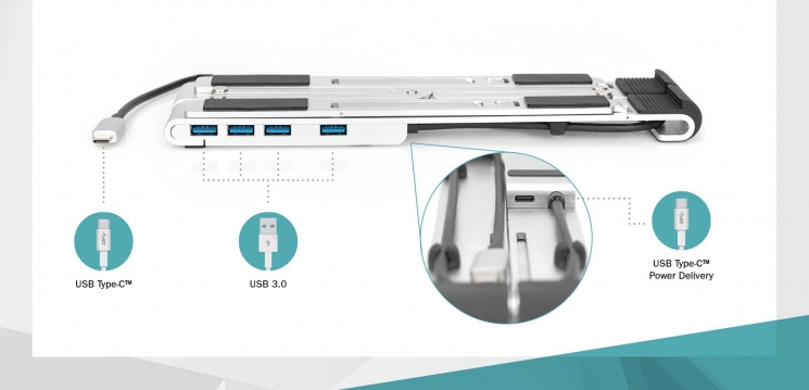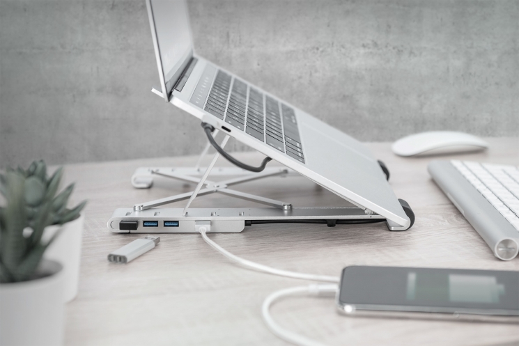Особливості товару Підставка для ноутбука DIGITUS Variable Notebook Stand, до 17'', USB-C Dock 5-Port, сіра