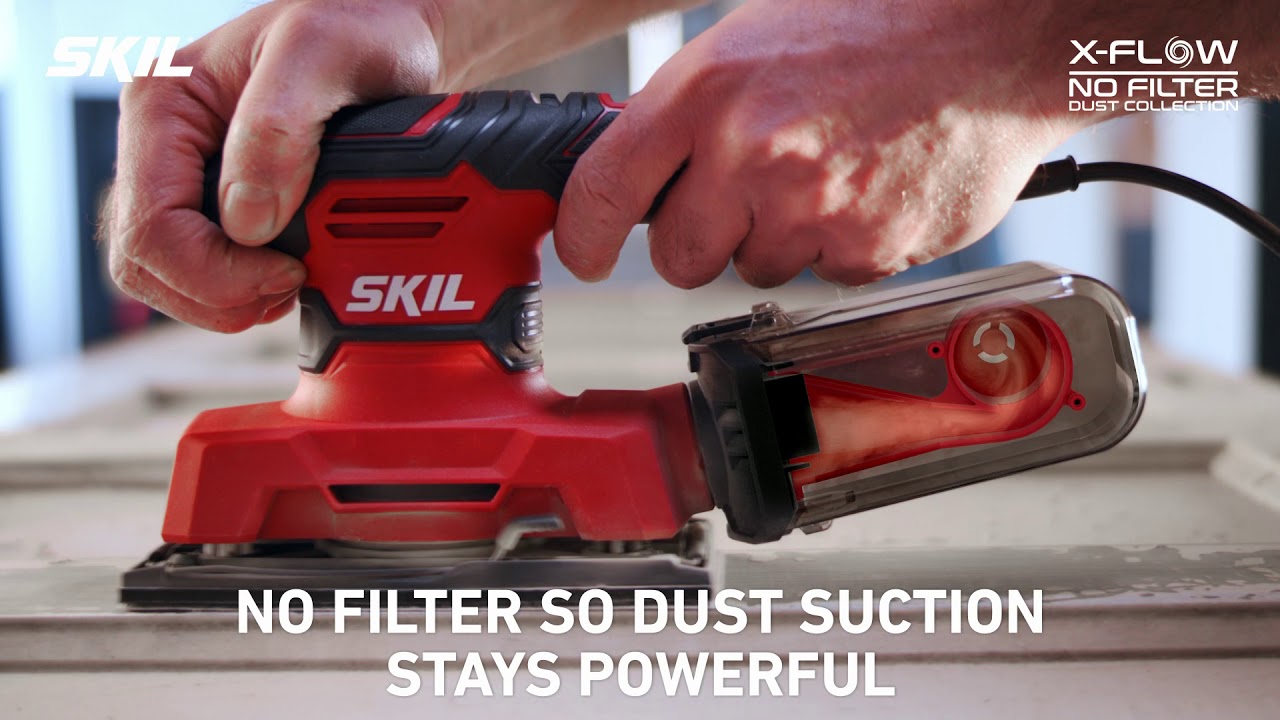 Цей інструмент має унікальну систему збору пилу «X-Flow», яка відфільтровує пил без фільтра. Основна перевага полягає в тому, що фільтр не засмічується, тому ви можете бути впевнені в постійному потужному всмоктуванні пилу для більш тривалої та чистої роботи. Але якщо ви віддаєте перевагу використанню пилососа, можна також приєднати адаптер для підключення пилососа. Високоякісні захищені від пилу кулькові підшипники гарантують, що пил не потрапить до важливих внутрішніх деталей, і цим самим подовжують термін експлуатації інструмента. Для вашої зручності цей інструмент має систему балансування противаги, яка називається «VRS». Вона зменшує рівень вібрації, що призводить до меншої втоми під час роботи. Ця шліфувальна машина має подвійну систему кріплення: затискачі та липучки, тому можна використовувати як стандартні шліфувальні аркуші, так і аркуші на липучках. SKIL 7362 AA постачається з трьома шліфувальними аркушами, контейнером для пилу «X-Flow», адаптером для підключення пилососа та пробійником для паперу.