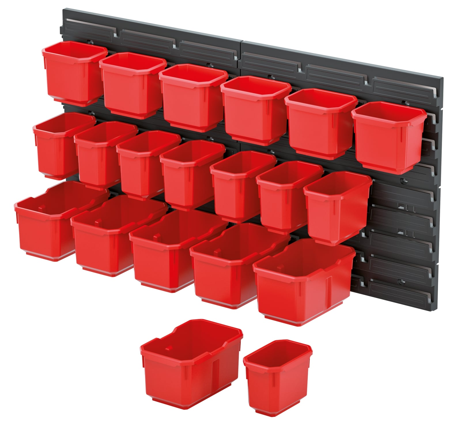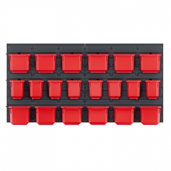 Головна - Побутова техніка, інструменти та товари для дому - Інструмент та обладнання - Ручний інструмент - Ящики, органайзери і сумки для інструментів - Kistenberg - Панель підвісна з набором контейнерів для зберігання KOR6, 2 панелі 38.6*1.8*39см, 20 контейнерів, пластик