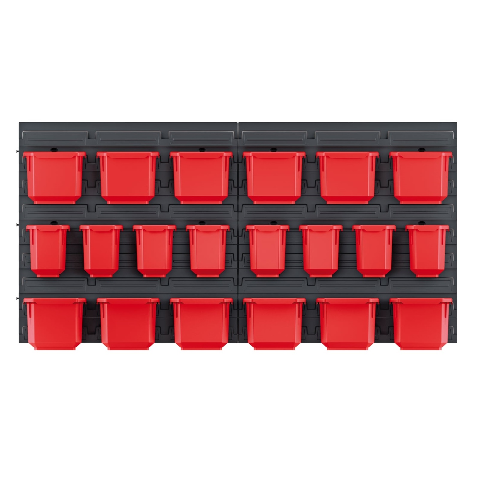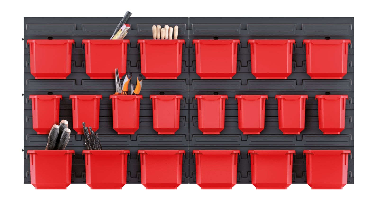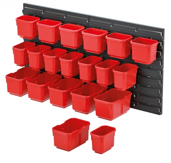 Головна - Побутова техніка, інструменти та товари для дому - Інструмент та обладнання - Ручний інструмент - Ящики, органайзери і сумки для інструментів - Kistenberg - Панель підвісна з набором контейнерів для зберігання KOR4, 2 панелі 38.6*1.8*39см, 10 контейнерів, 20 гачків, пластик
