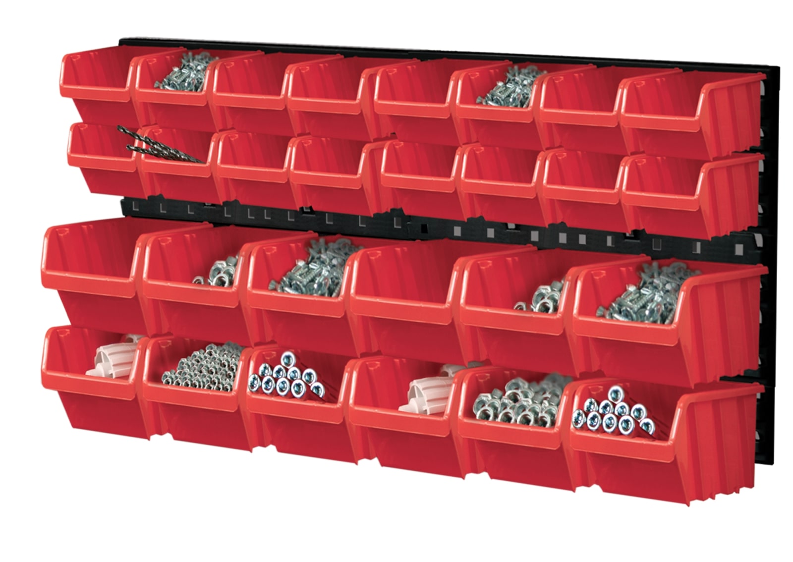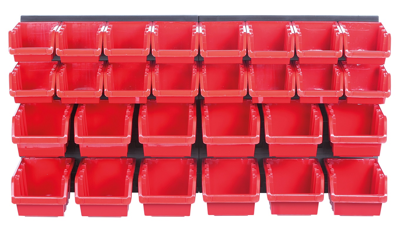 Головна - Побутова техніка, інструменти та товари для дому - Інструмент та обладнання - Ручний інструмент - Ящики, органайзери і сумки для інструментів - Kistenberg - Панель підвісна з набором контейнерів для зберігання KOR1, 2 панелі 38.6*1.8*39см, 28 контейнерів, пластик