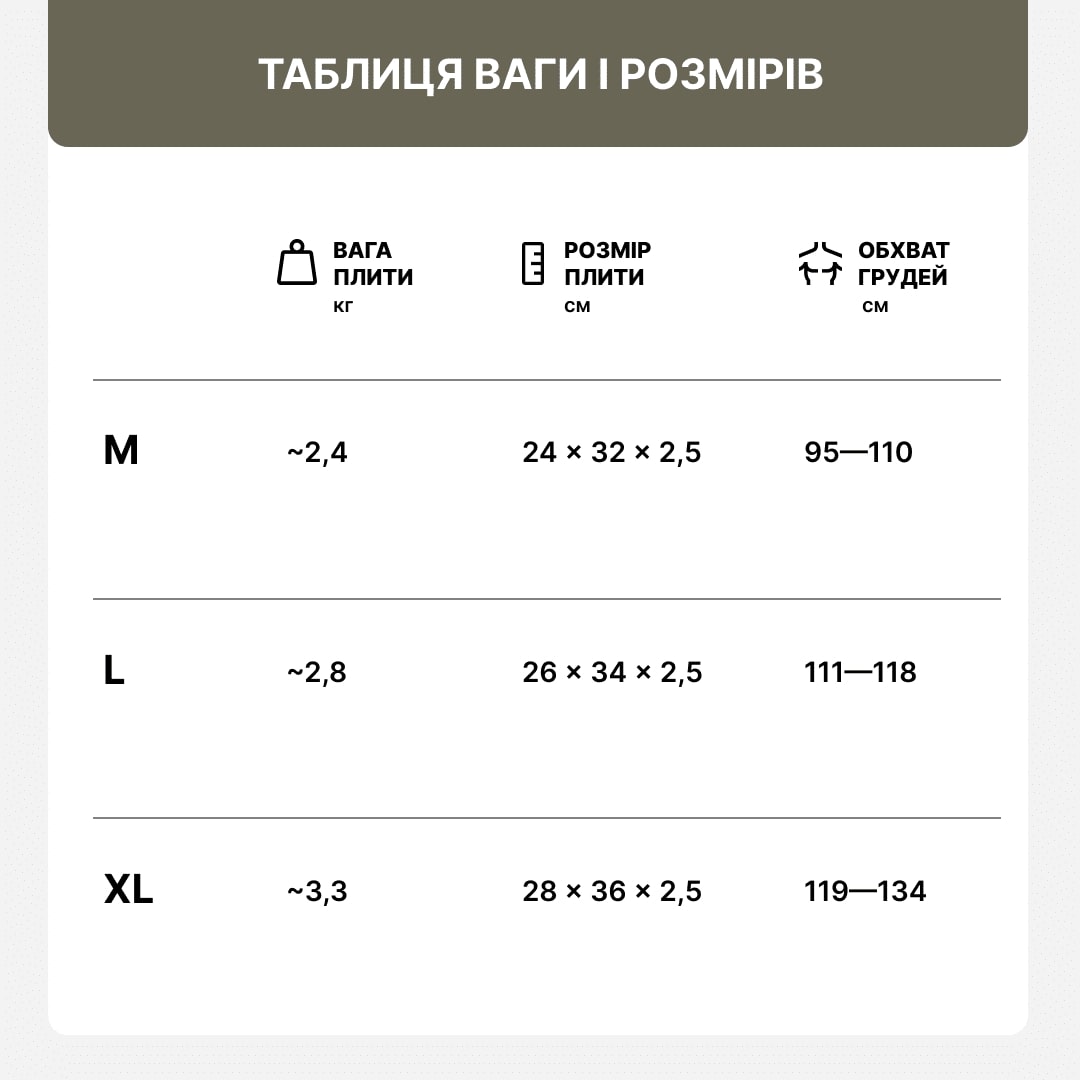 Бронеплити 4-го класу, виготовлені з сучасних матеріалів, таких як карбід кремнію та НВМПЕ, забезпечують надійний захист від 3-6 пострілів найпоширенішими калібрами. Легка вага (1,6–3,3 кг) та анатомічна форма SAPI із вигином у двох площинах гарантують комфорт під час тривалого носіння.