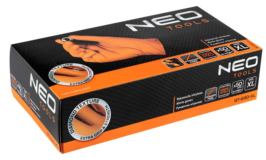 Опис Рукавички робочі/медичні Neo Tools, перфоровані нітрилові, р.XL, помаранчевий, 50шт