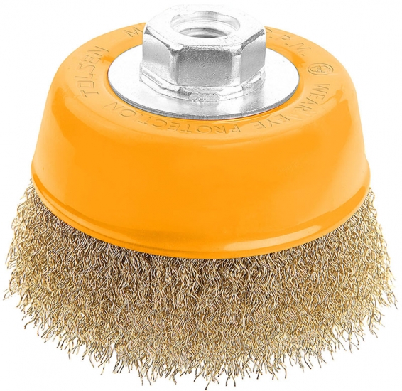Особливості товару Щітка чашкова Tolsen Профі, торцева, рифлений дріт 0.3мм, 75мм, різьблення M14