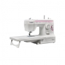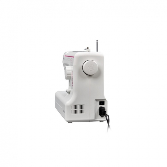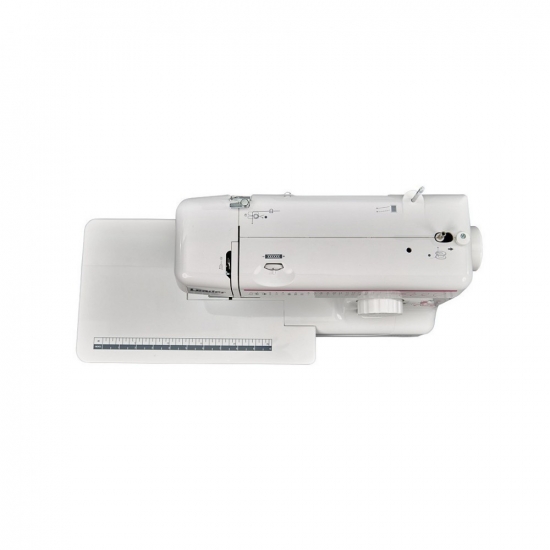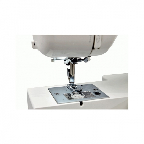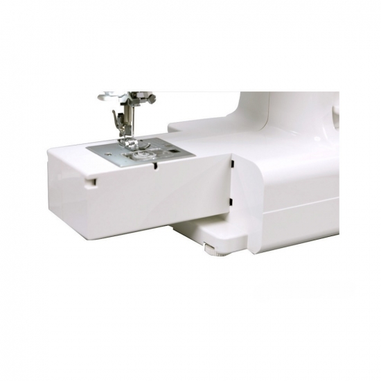 Модель оснащена вбудованим нитковтягувачем, який дуже зручний під час заправки нитки в голку. Перевага машини - в горизонтальному човнику: заправка шпульної нитки відбувається швидко, видно наявність шпульної нитки. На металевій голковій пластині нанесена розмітка для направлення тканини під час шиття. Під час роботи з виробами по колу (рукава, штанини) зручно використовувати вільний рукав, знявши знімний столик, у відсіку якого зберігається комплектація.