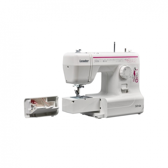 Технічні характеристики Швейна машина LEADER SILVIA, електромех., 70Вт, 17 шв.оп., петля напівавтомат, з приставним столиком, білий+рожевий: