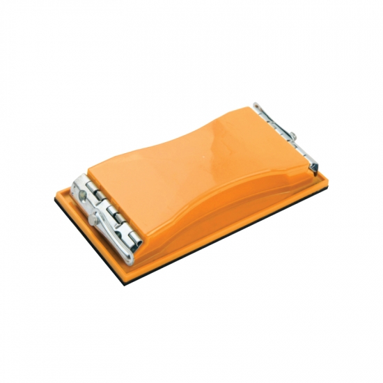Для фіксації знімних шліфувальних елементів конструкцією передбачені металеві затискні засувки на пружинах.