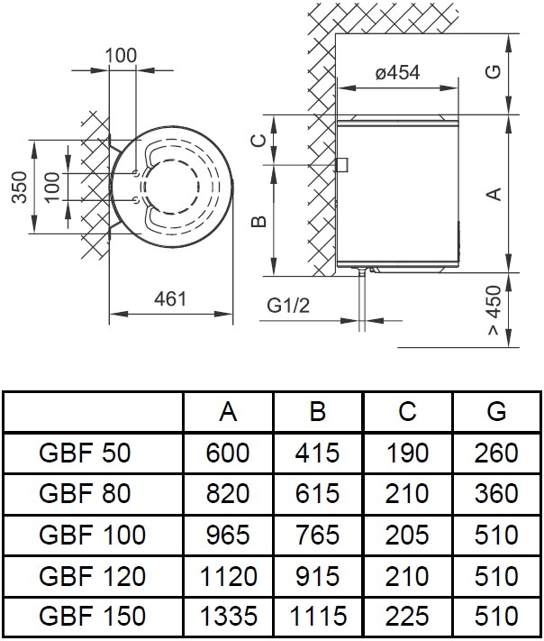 | під’єднання до мережі - G 1/2 | |
