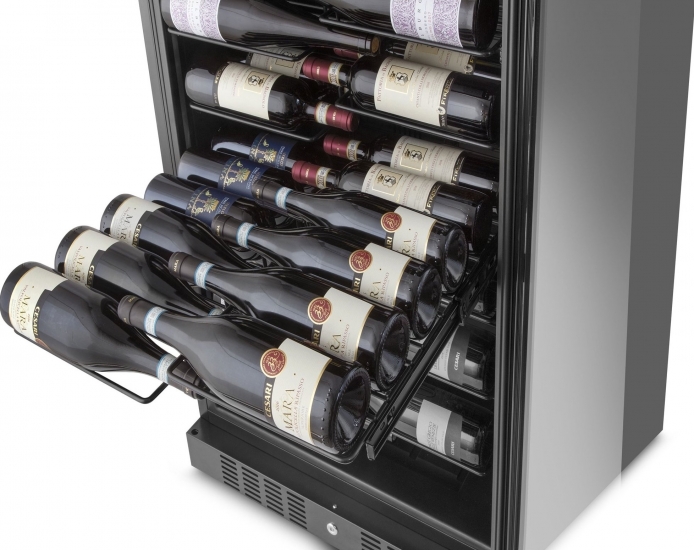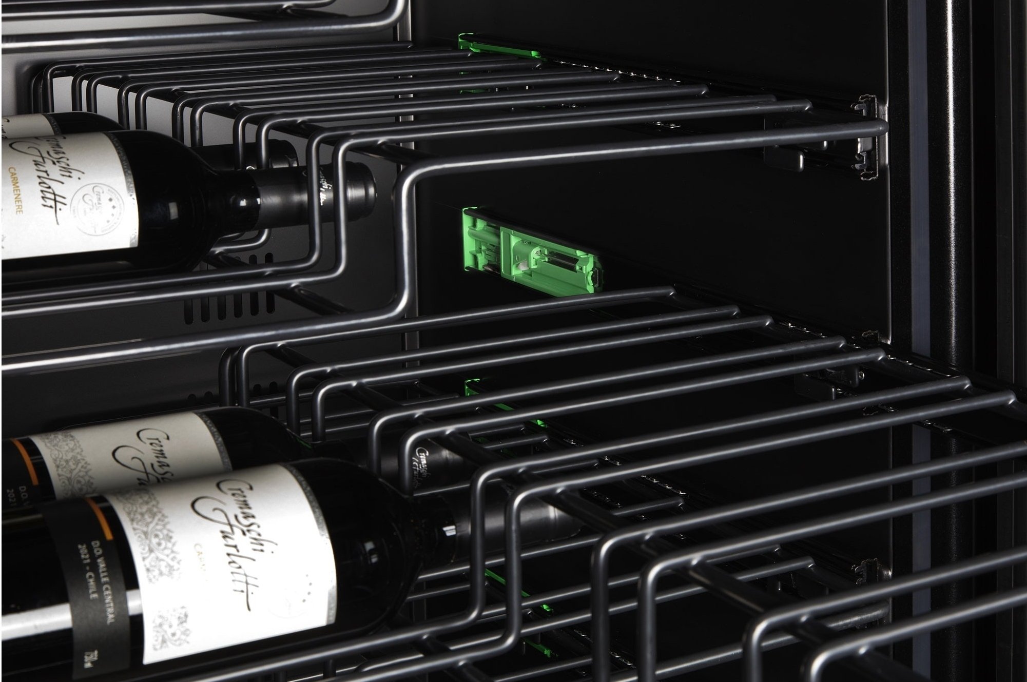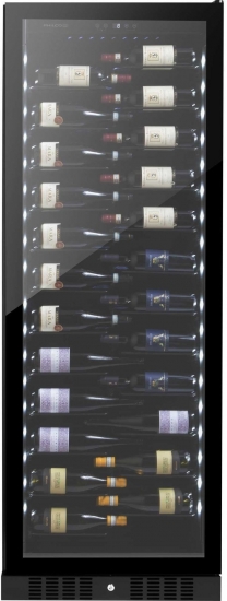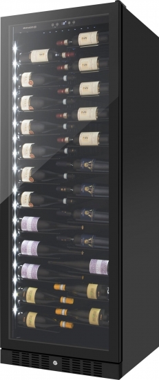 Цей холодильник оснащений сучасним дисплеєм, який дозволяє легко контролювати температуру. Підсвітка додає елегантності і дозволяє зручно переглядати вашу колекцію навіть у темряві. Чорний колір корпусу додає стильного вигляду, що робить цей холодильник чудовим доповненням до будь-якого інтер'єру.