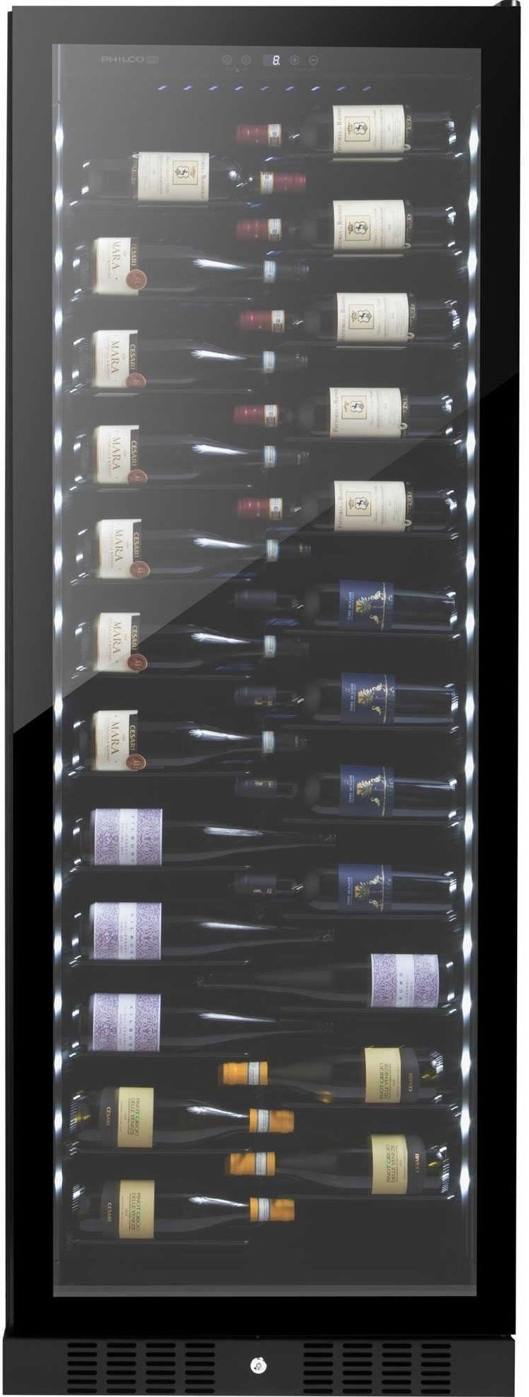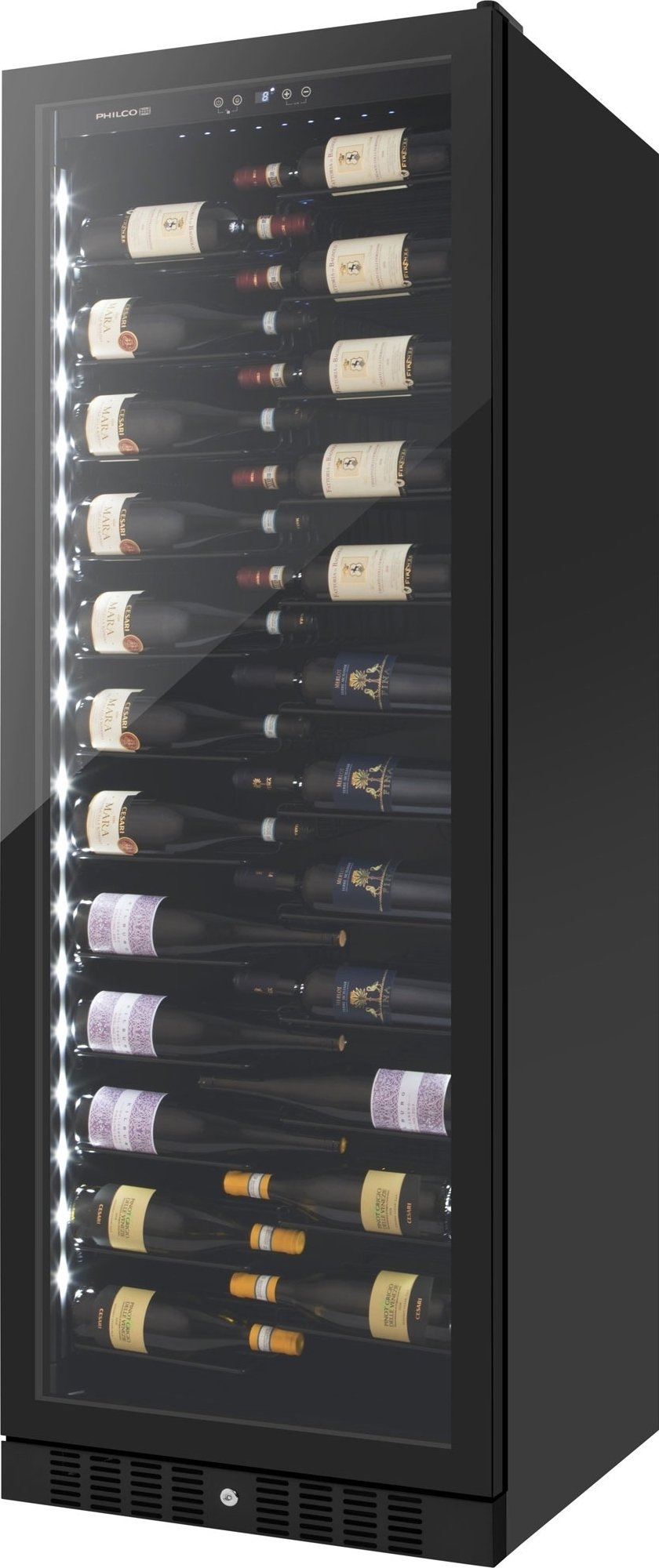 Опис Холодильник Philco для вина, 177х59.5х68, холод.відд.-472л, зон - 1, бут-143, диспл, підсвітка, чорний