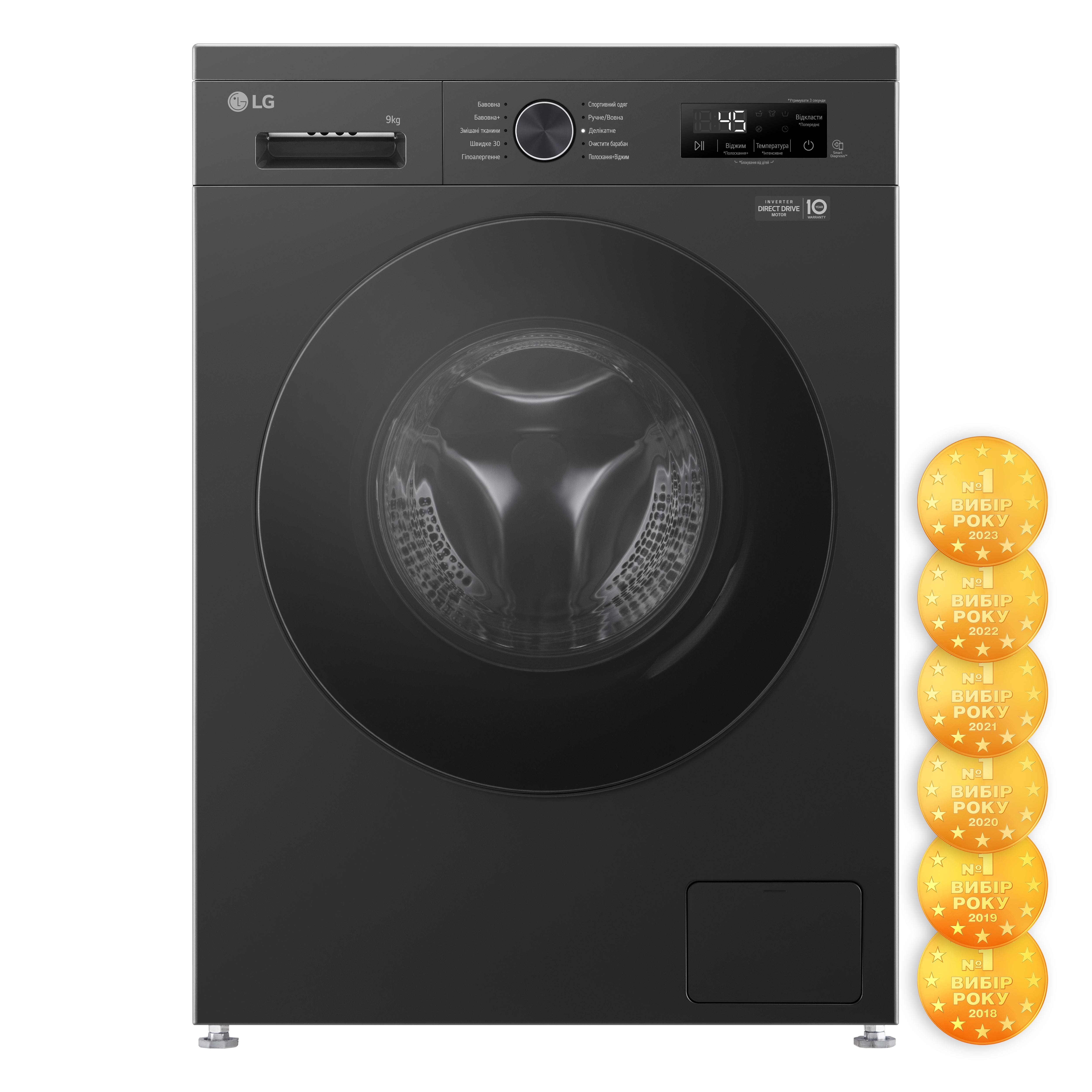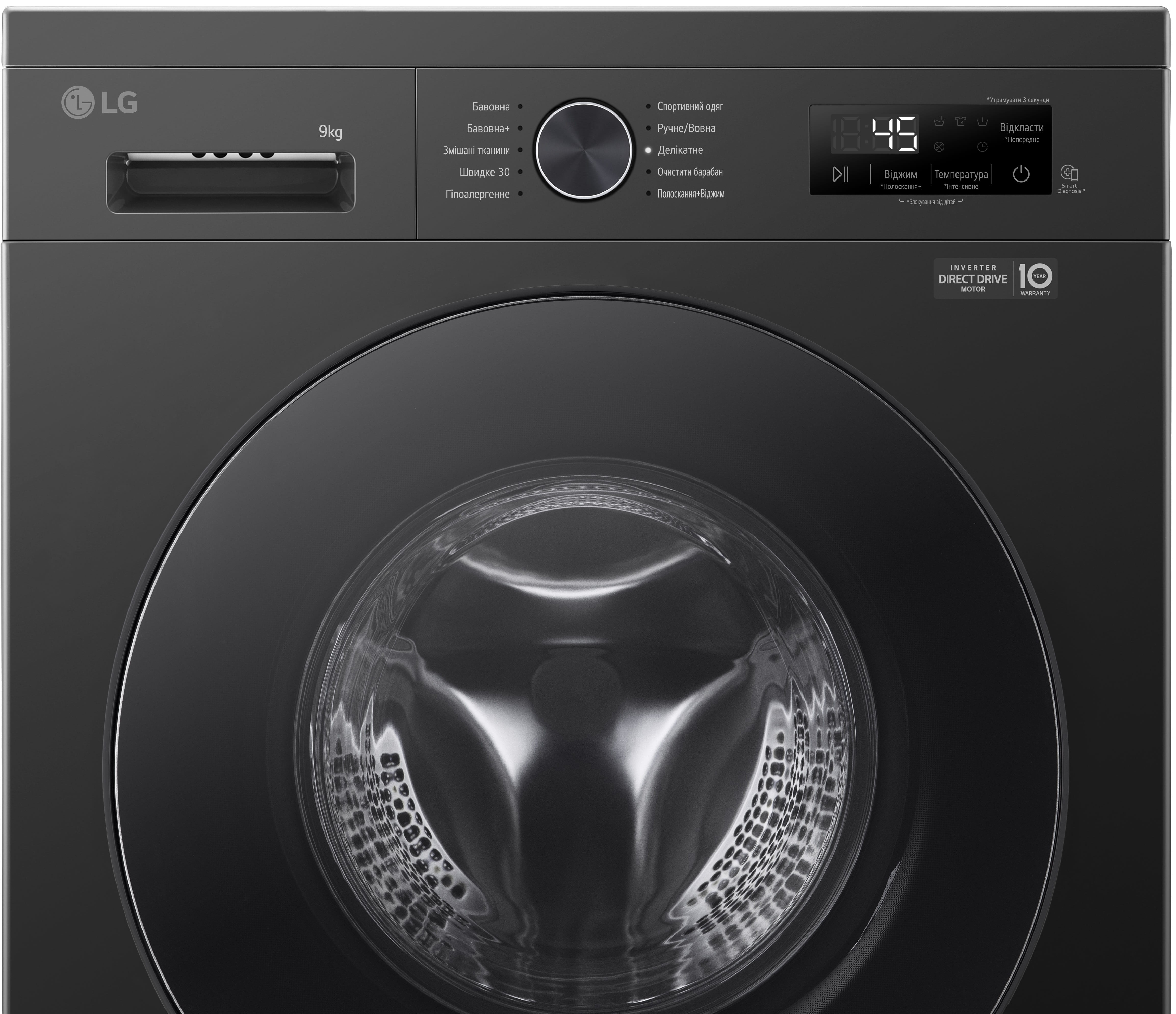 Пральна машина LG фронтальна, 9кг, 1200, A+++, 55см, дисплей, пара, інвертор, чорний