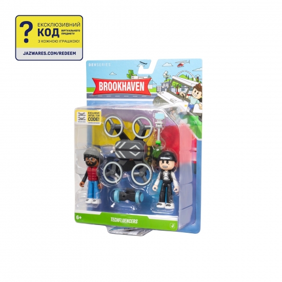 Пориньте у світ Brookhaven: Techfluencers разом із DEVSeries. Це ігровий набір з двох 7 сантиметрових фігурок Кайла та Айджея що створені на основі популярної онлайн гри Brookhaven на платформі Roblox. До комплекту набору також входять гіроборд, квадрокоптер, селфіпалка, спеціальний контрольний список колекціонера, та ексклюзивний код віртуального предмета, який розблокує квадрокоптери для вашого віртуального аватара. Офіційно ліцензований продукт Brookhaven від Jazwares.