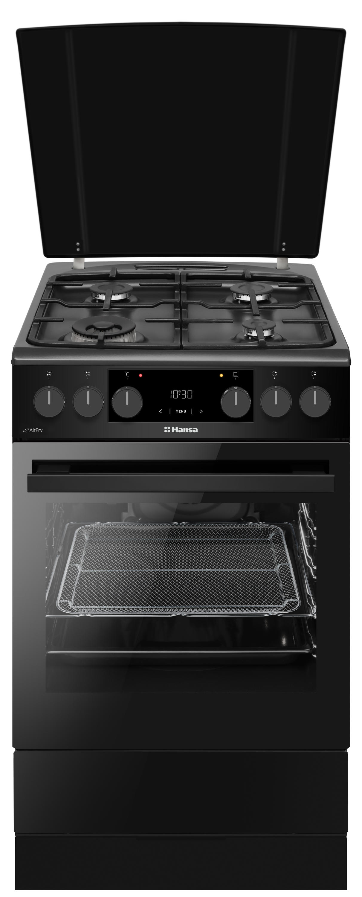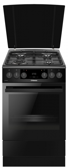 Плита Hansa комбинированная, 65л, 50x60см, дисплей, конвекция, чугун, черный
