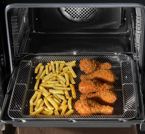 Hansa FCMM58329 – це сучасна комбінована плита у стильному чорному дизайні, яка поєднує функціональність і зручність. Газова варильна панель оснащена 4 конфорками, зокрема турбоконфоркою, автоматичним запалюванням та чавунними ґратами. Простора 65-літрова електрична духовка має 8 програм, конвекцію та електричний гриль для точного приготування страв. Каталітичне очищення спрощує догляд, а спеціальне деко AirFry дозволяє готувати без жиру.