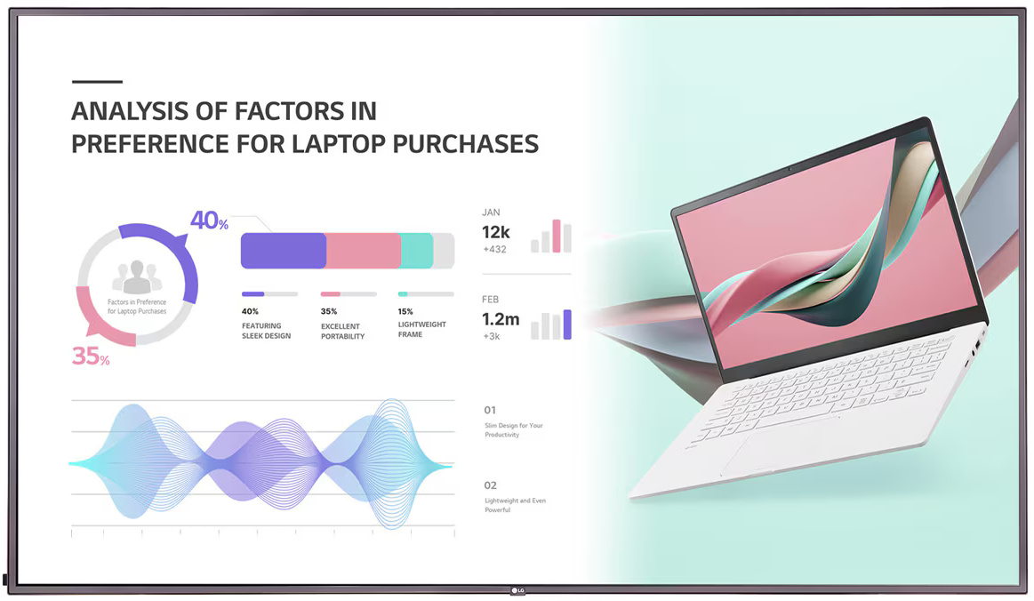 Цей дисплей розрахований на безперервну роботу 24/7, що робить його ідеальним для комерційних застосувань – магазинів, торгових центрів, конференц-залів і рекламних вивісок. webOS 6.0 дозволяє легко керувати контентом та інтегруватися з цифровими інформаційними системами без потреби у зовнішніх медіаплеєрах.