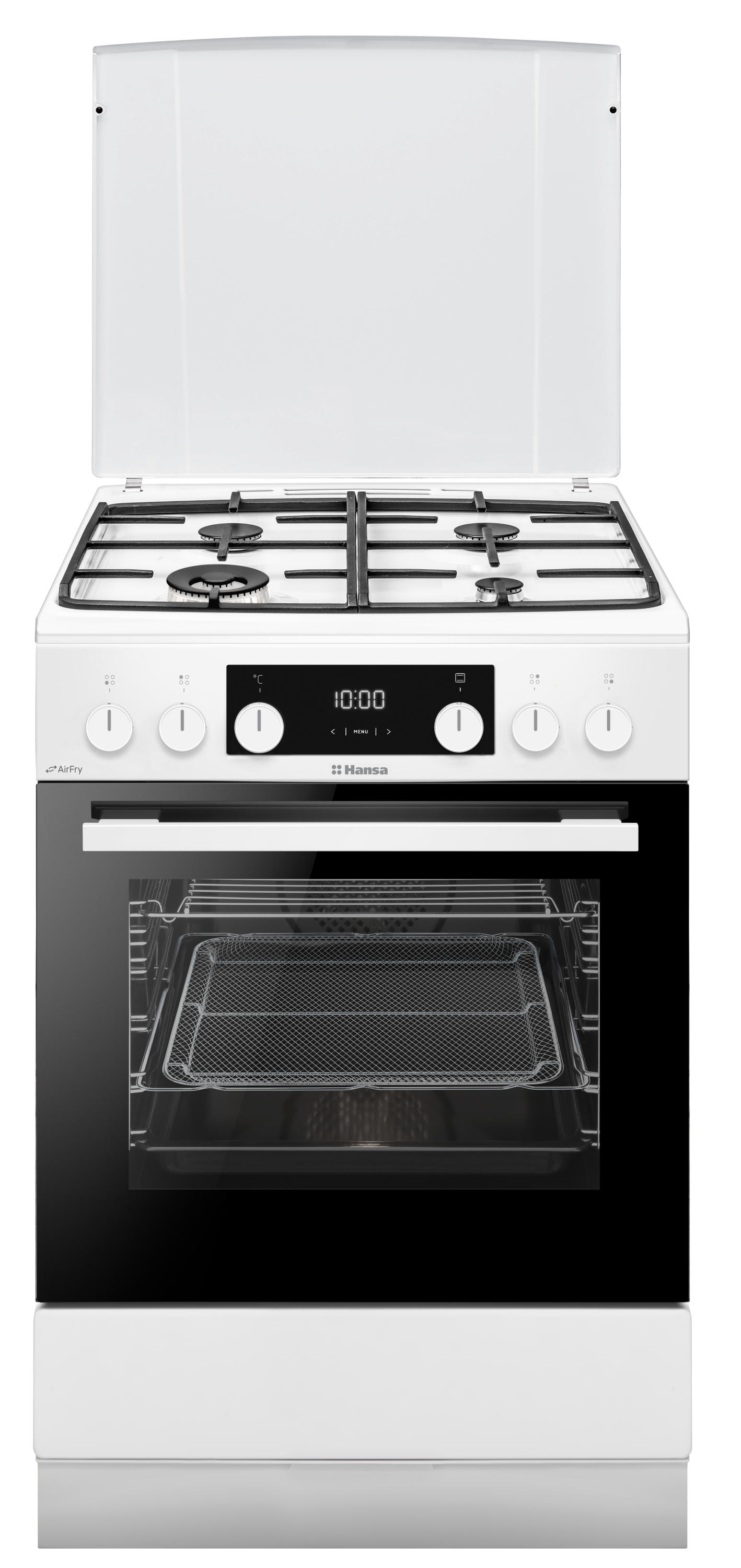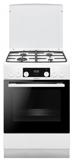 Плита Hansa комбинированная, 77л, 60x60см, дисплей, конвекция, чугун, белый