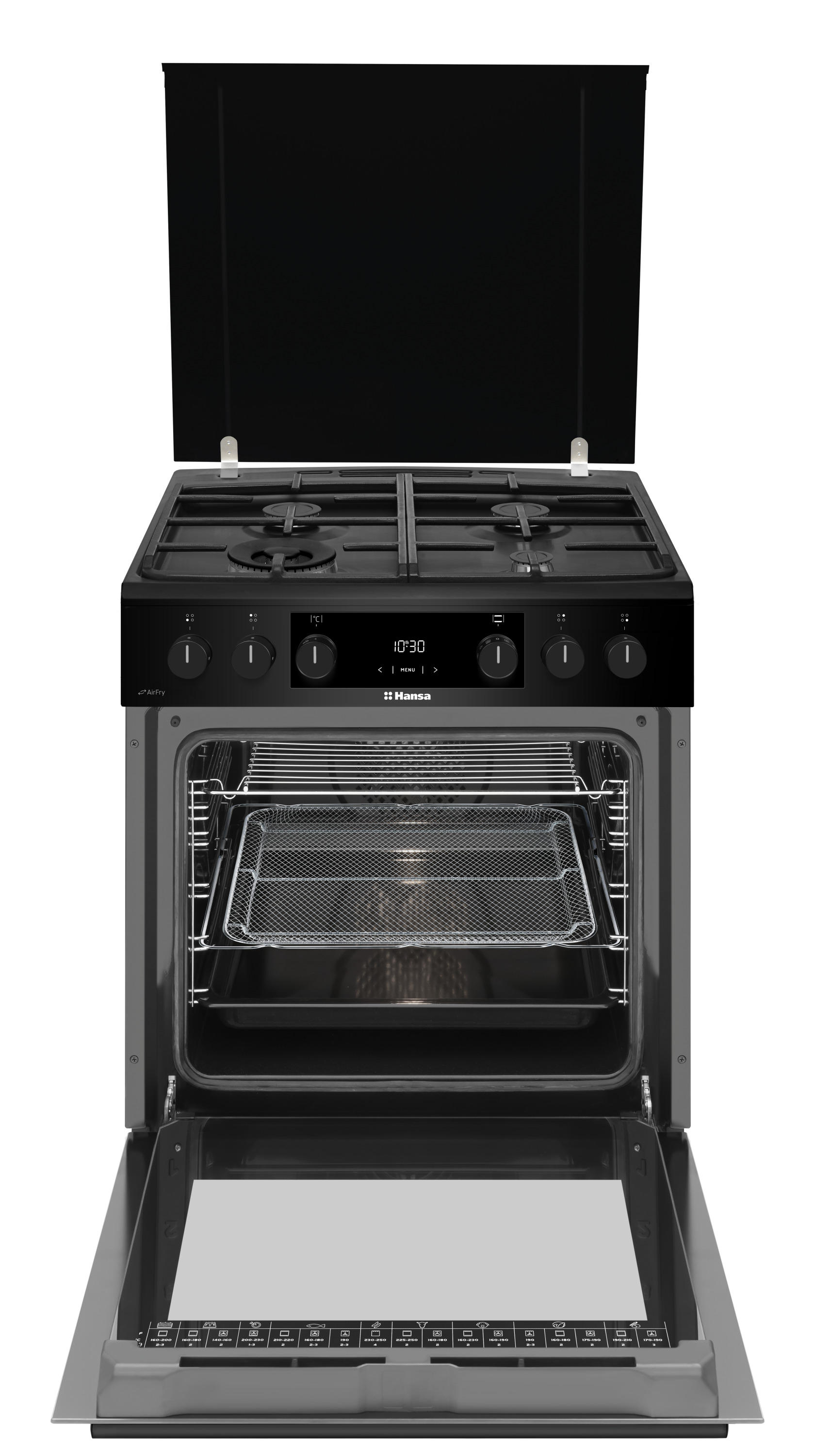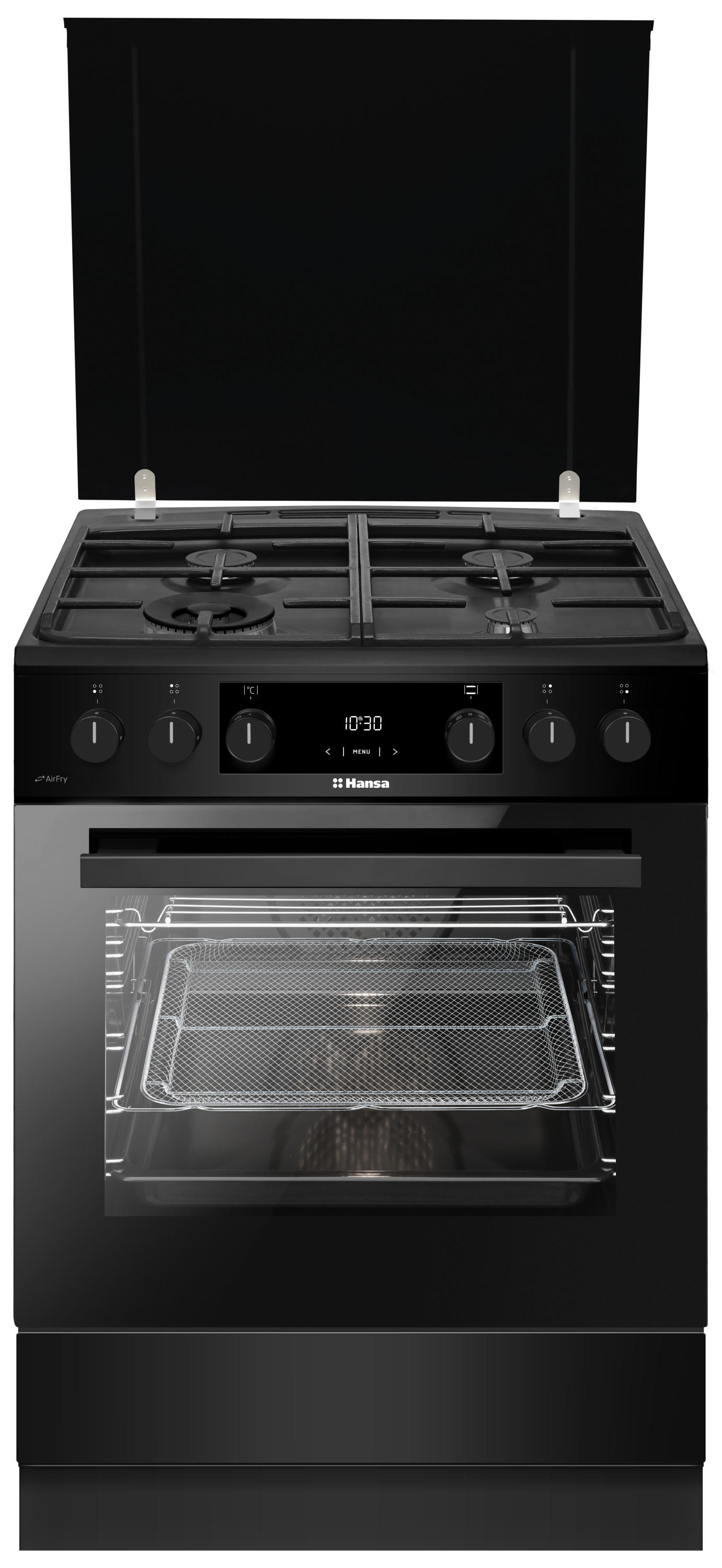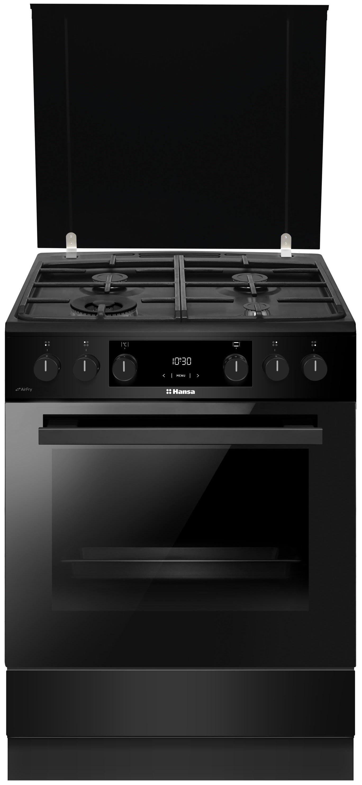 Плита Hansa комбинированная, 77л, 60x60см, дисплей, конвекция, чугун, черный