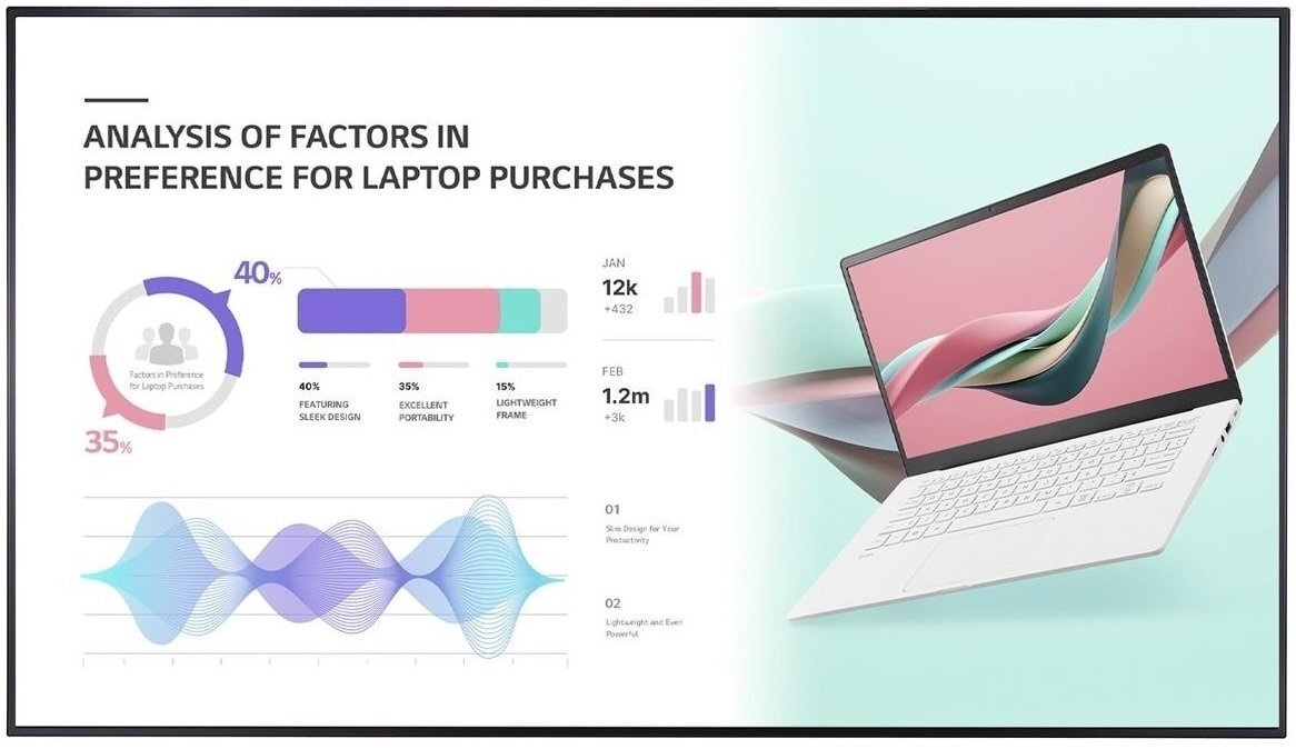 Завдяки webOS 6.0, дисплей підтримує інтуїтивне керування контентом без необхідності використання додаткових пристроїв. Вбудовані Wi-Fi, HDMI, DisplayPort, USB і LAN забезпечують просте підключення до різних систем і пристроїв, а IP5X-захист гарантує стійкість до пилу, що підвищує довговічність пристрою.