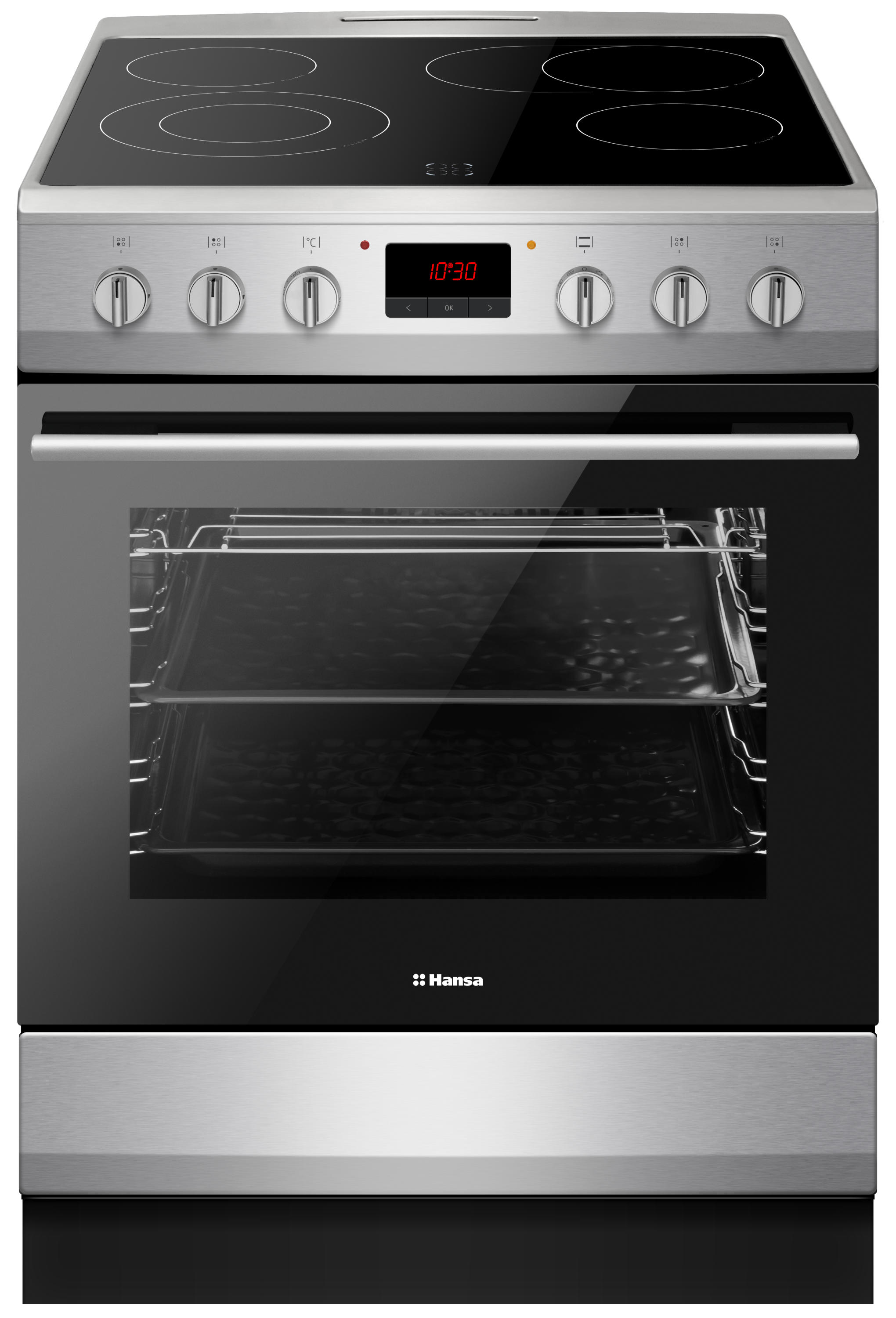 Hansa Плита електрична склокерамічна, 65л, 60x60см, дисплей, конвекція, нерж