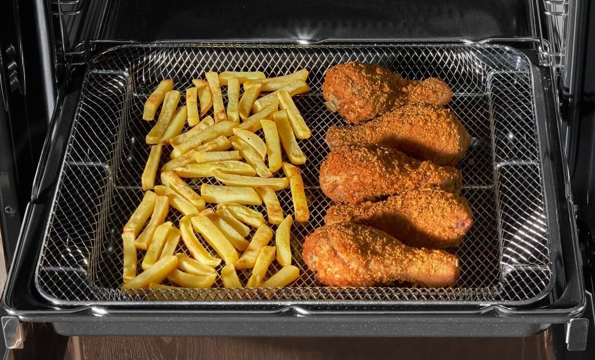 Завдяки верхньому і нижньому тену та конвекційному вентилятору ви зможете готувати великі порції запіканок чи м’яса.